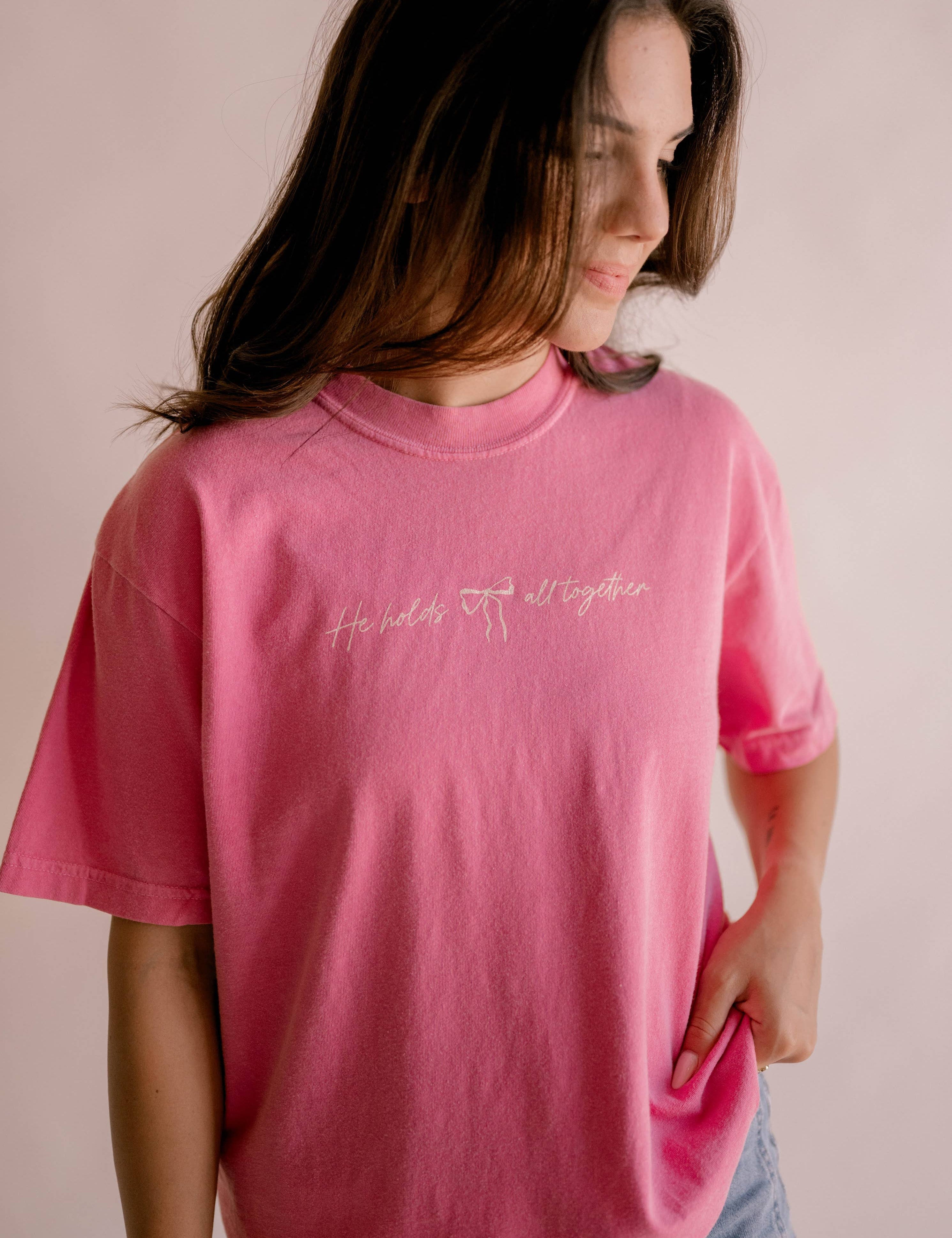 He Holds All Together Tee - Pink | Women's Christian Tee