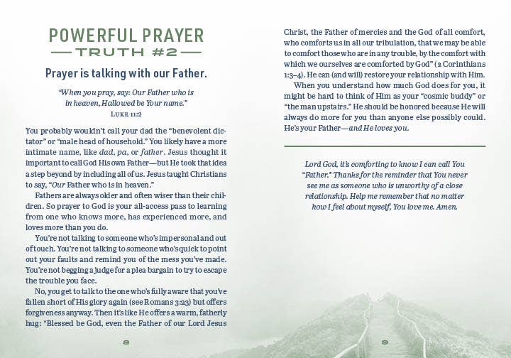 God wants to hear from His children. At any time, in any circumstance, you have the privilege of talking with the almighty Creator of the universe. And according to Jesus, the “default setting” of prayer is that His Father will hear and answer: “Ask, and it shall be given to you. Seek, and you shall find. Knock, and it shall be opened to you. For everyone who asks receives, and he who seeks finds, and to him who knocks it shall be opened” (Matthew 7:7–8).