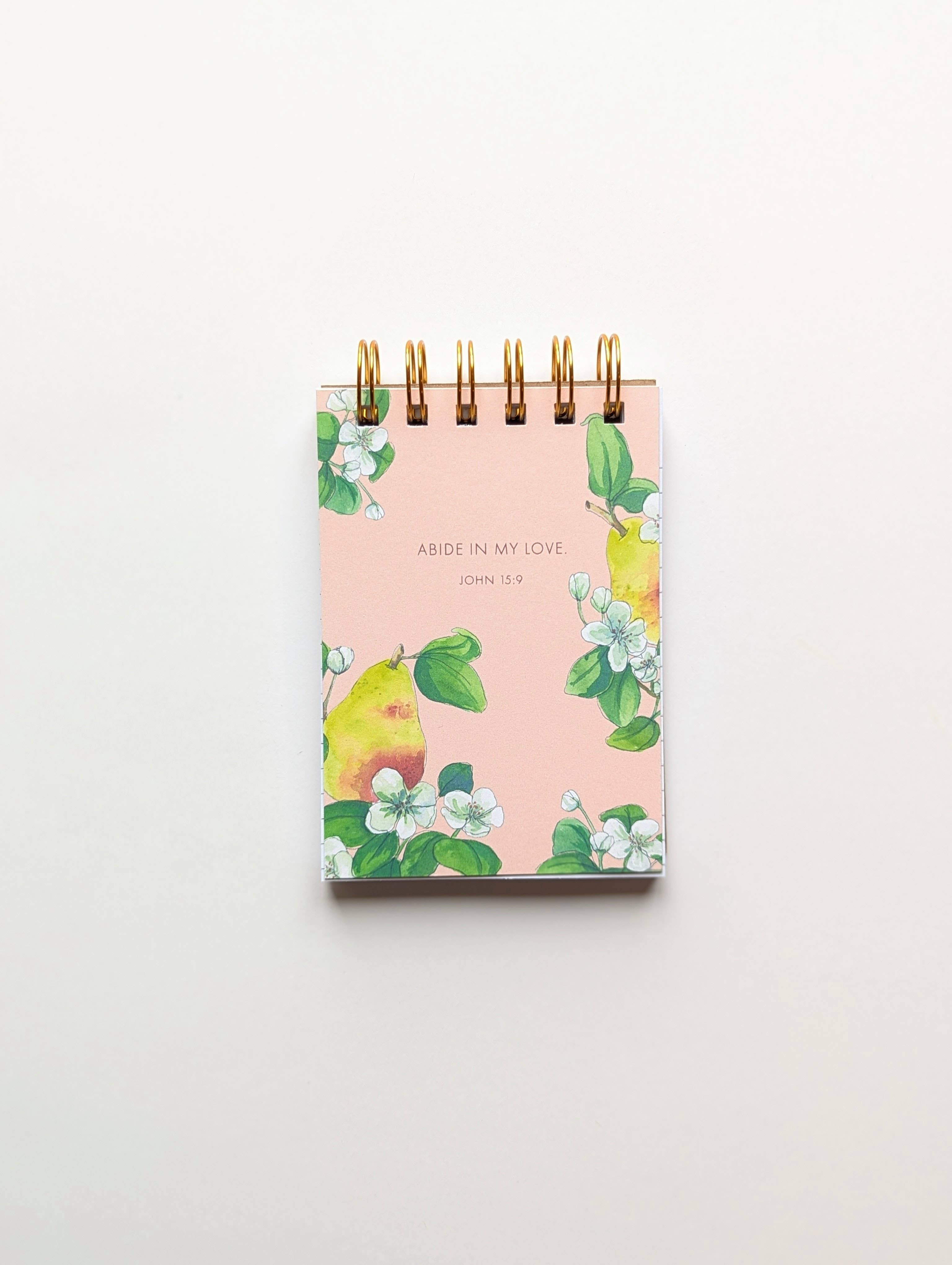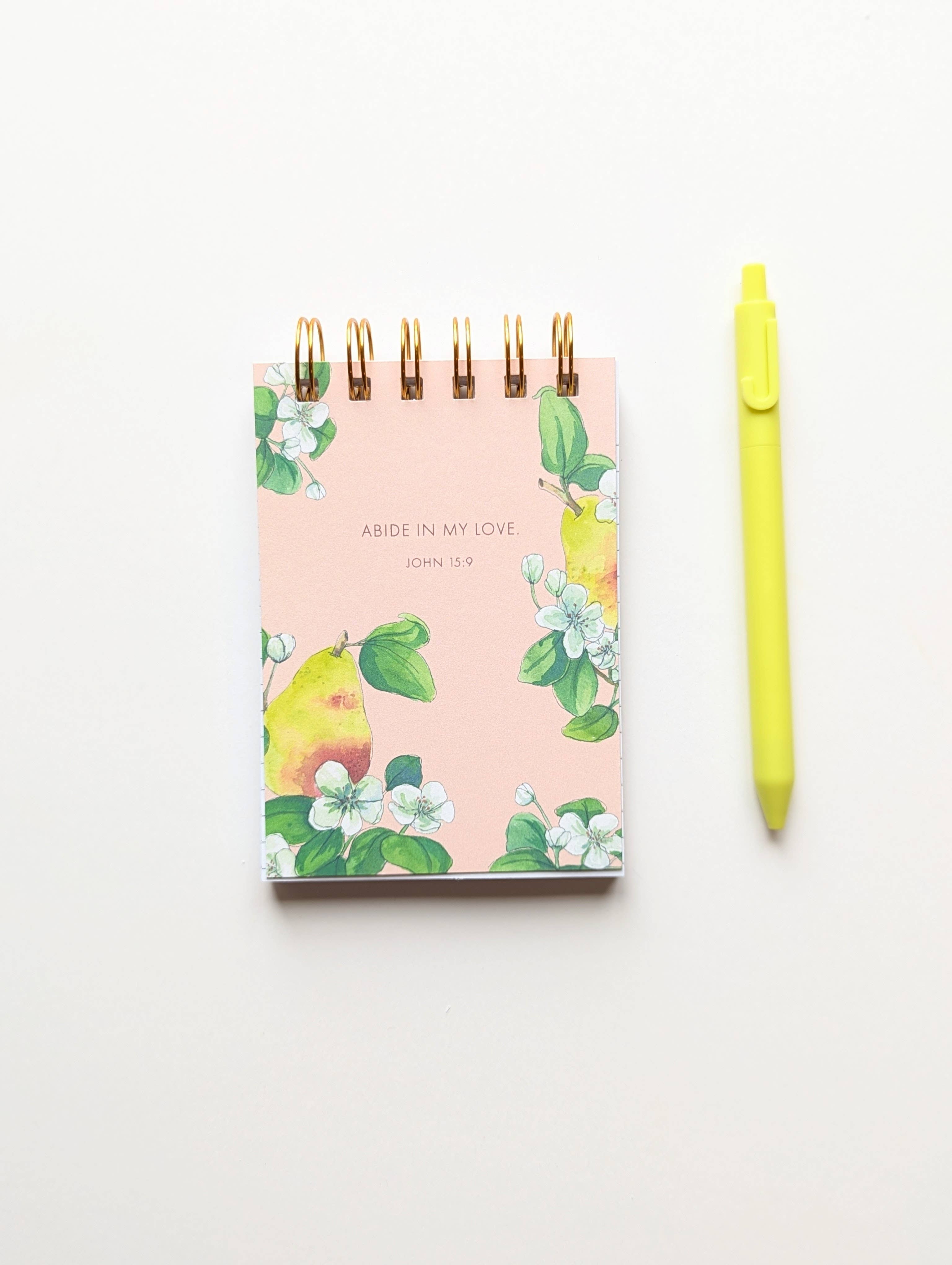The cutest little sidekick to your purse, car, or desk drawer! You’ll always have a place to jot down notes and to be reminded to Abide in Christ. Because in the midst of life, I think we all need to be reminded to find our strength by being with Him!