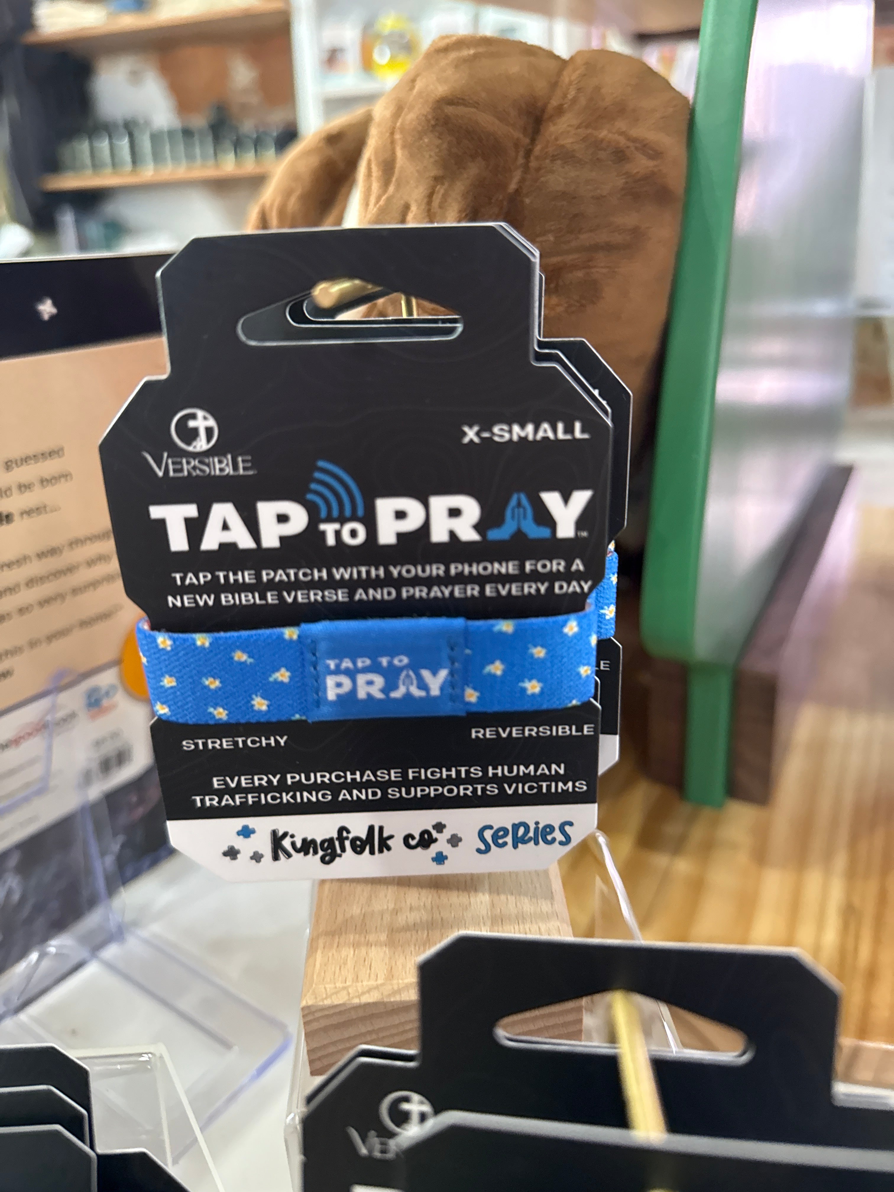 Introducing this new line of Tap To Pray™ wristbands. No app required, just tap the patch with your smartphone to receive a new bible verse and prayer every day. Plus, get a new verse and prayer anytime you want; just hit the "New Verse" link on the bottom of the page! Tap To Pray works with most smartphones. These new wristbands are soft, stretchy, reversible and waterproof! With two reversible patterns on each wristband and 5 sizes to choose from, it's easy to find a Tap To Pray wristband that's right for you!