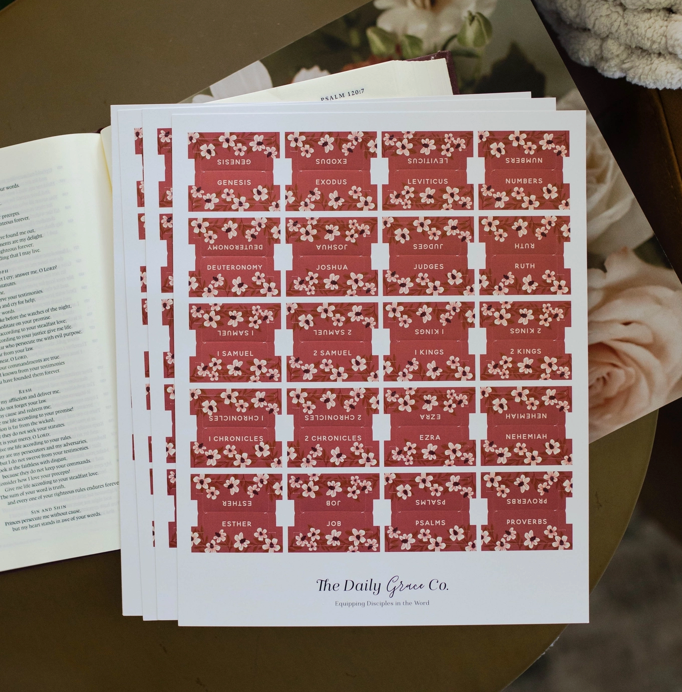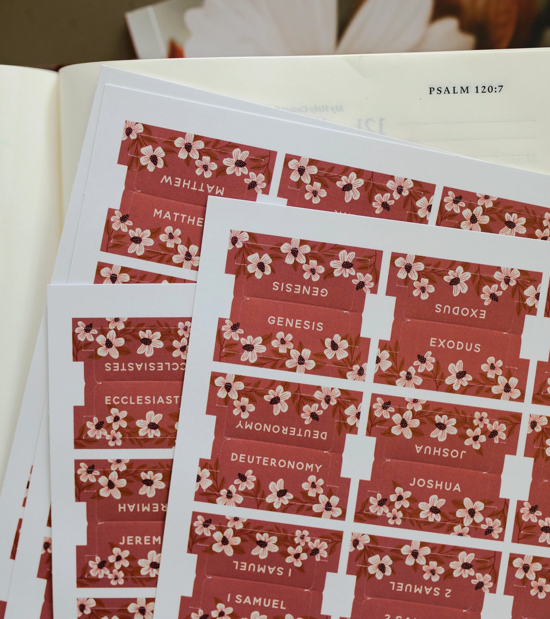 The Pastel Bible Tabs have double-sided gold foil lettering. Each set includes one tab for each book of the Bible plus 23 additional sticker tabs. Every tab includes an adhesive backing so you can easily apply them to your Bible pages with no extra supplies.