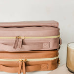 Premium water-resistant Vegan Leather, complimented with beautiful gold accents and a heat-stamped gold foil floral design on the front. This Bible Bag measures 11 x 8.5 x 3.5”. It ensures that even you largest Bible can experience the same level of protection and stylish presentation as its smaller companions. It fits standard to extra large Bibles measuring ≤ 10.62 x ≤7.5 x ≤2.5”.