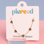 The cutest dainty bracelet made for wearing alone or stacking. We added the enamel/design on both sides so you don’t have to worry about it flipping to the backside (yes, it bugs us too). Sized perfectly for kids and adults to wear.