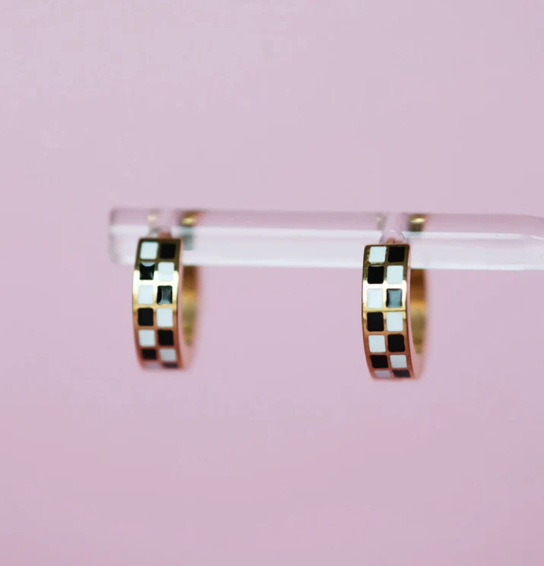 Black/White Checkered Huggie Earrings