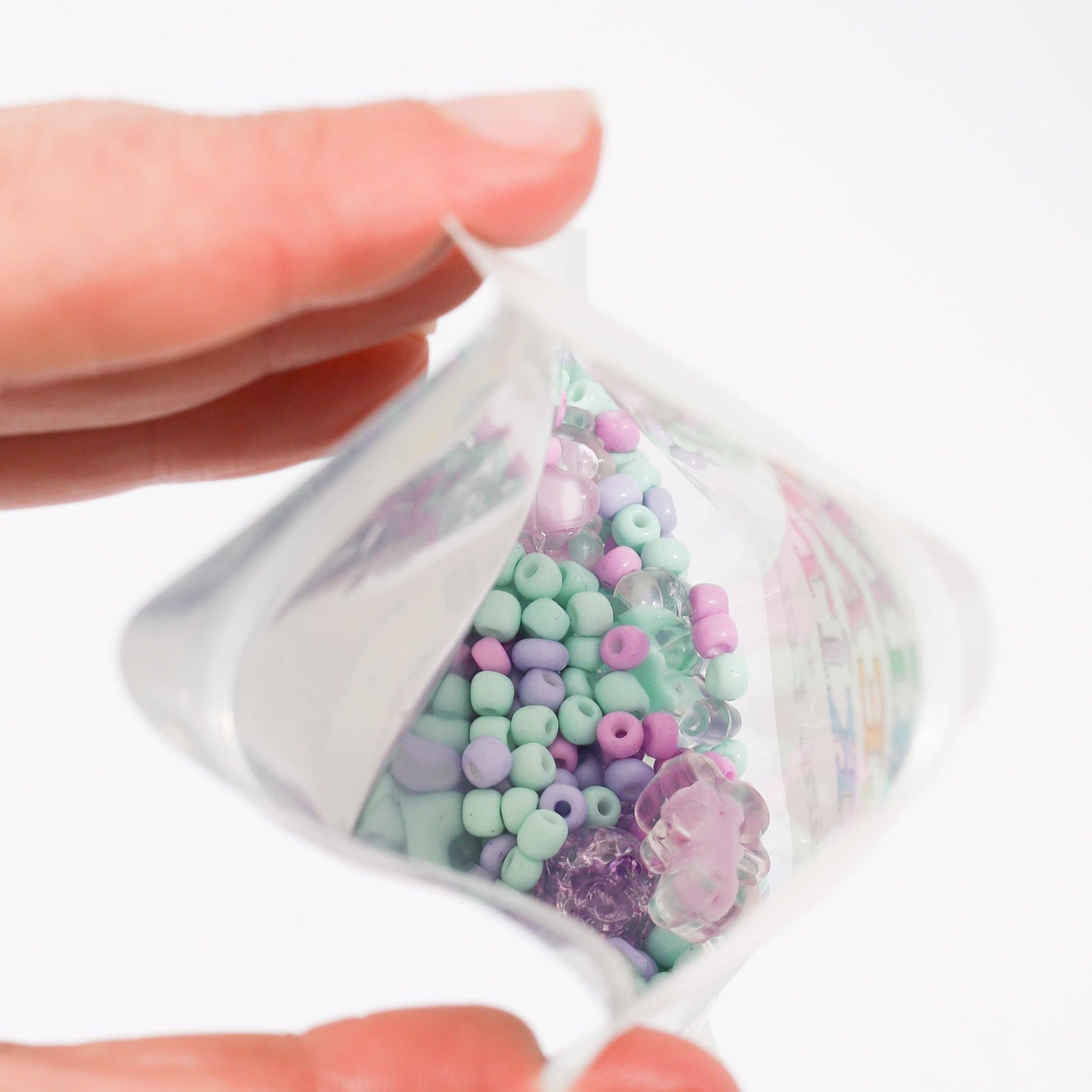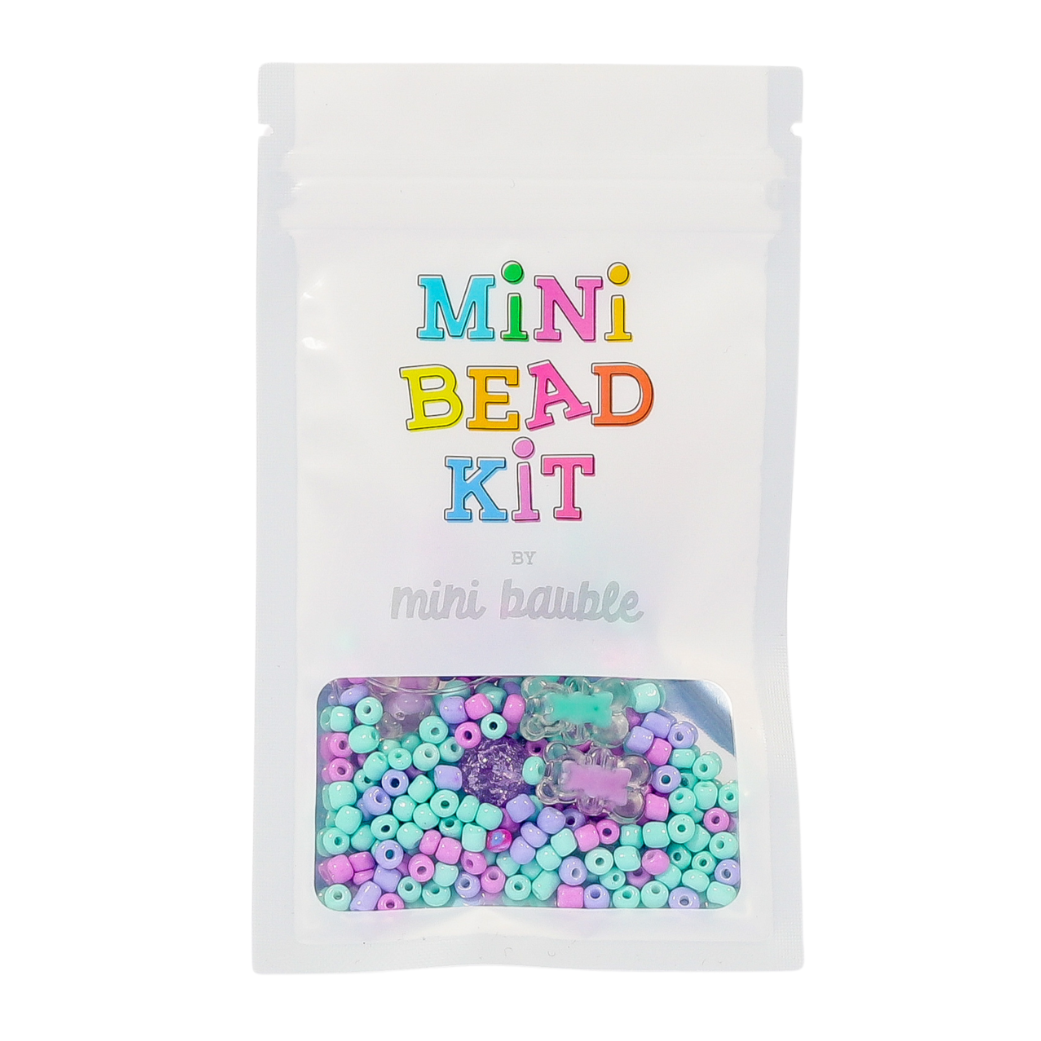 About Mini Bauble Bead Kits Mini Bauble Bead kits are individual-sized bead kits that make at least 1 necklace or 2 or more bracelets. Everything you need to make a jewelry piece is included in a resealable pouch. The uniqueness of Mini Bauble bead kits is in the bead selection that you'll find in the little pouch. Our team has hand-picked the kit designs - much like making baking a dessert - a little dash of this bead, and a sprinkle of that - which ends up being the most magnificent final product when done.