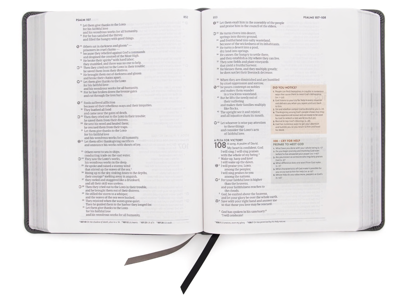 - Designed icons on every page identify select verses that display the seven realities of Experiencing God and two steps of Fresh Encounter found throughout God’s Word