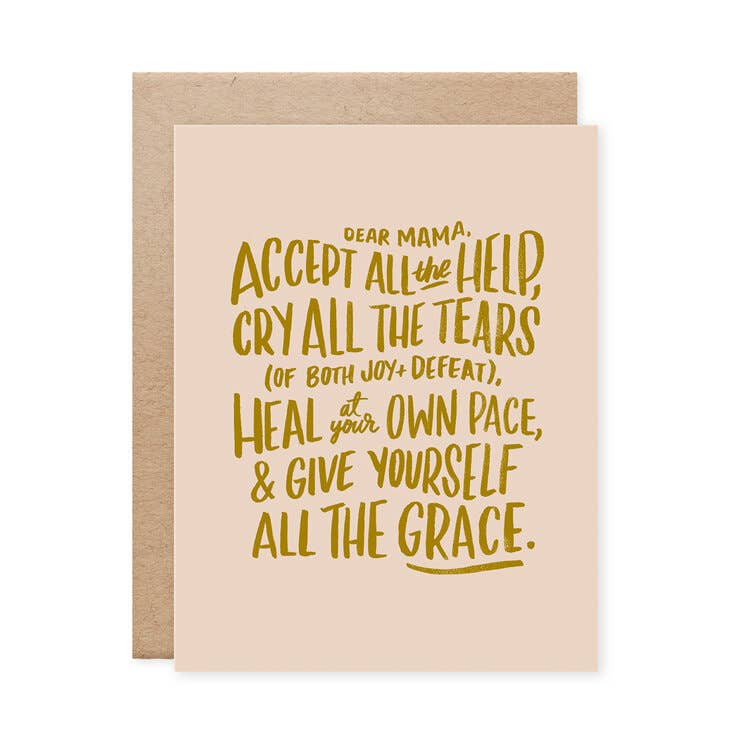 A card for new and expecting mothers—with a little more honesty, a little less rainbows & sunshine, but full of the things she needs to hear.