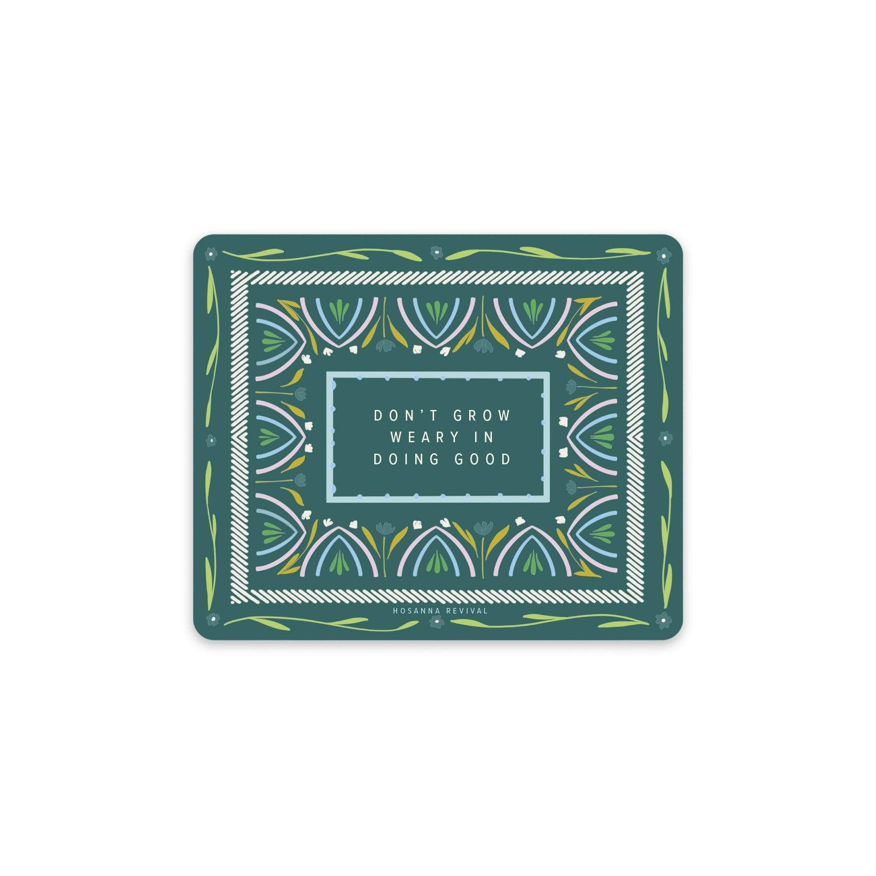 This beautiful rectangular sticker showcases an elegant purple and green frame adorned with delicate vines along the border. At the center, the inspiring phrase, “Don’t grow weary in doing good,” from Galatians 6:9 serves as a gentle reminder to persevere in honoring God through your actions.