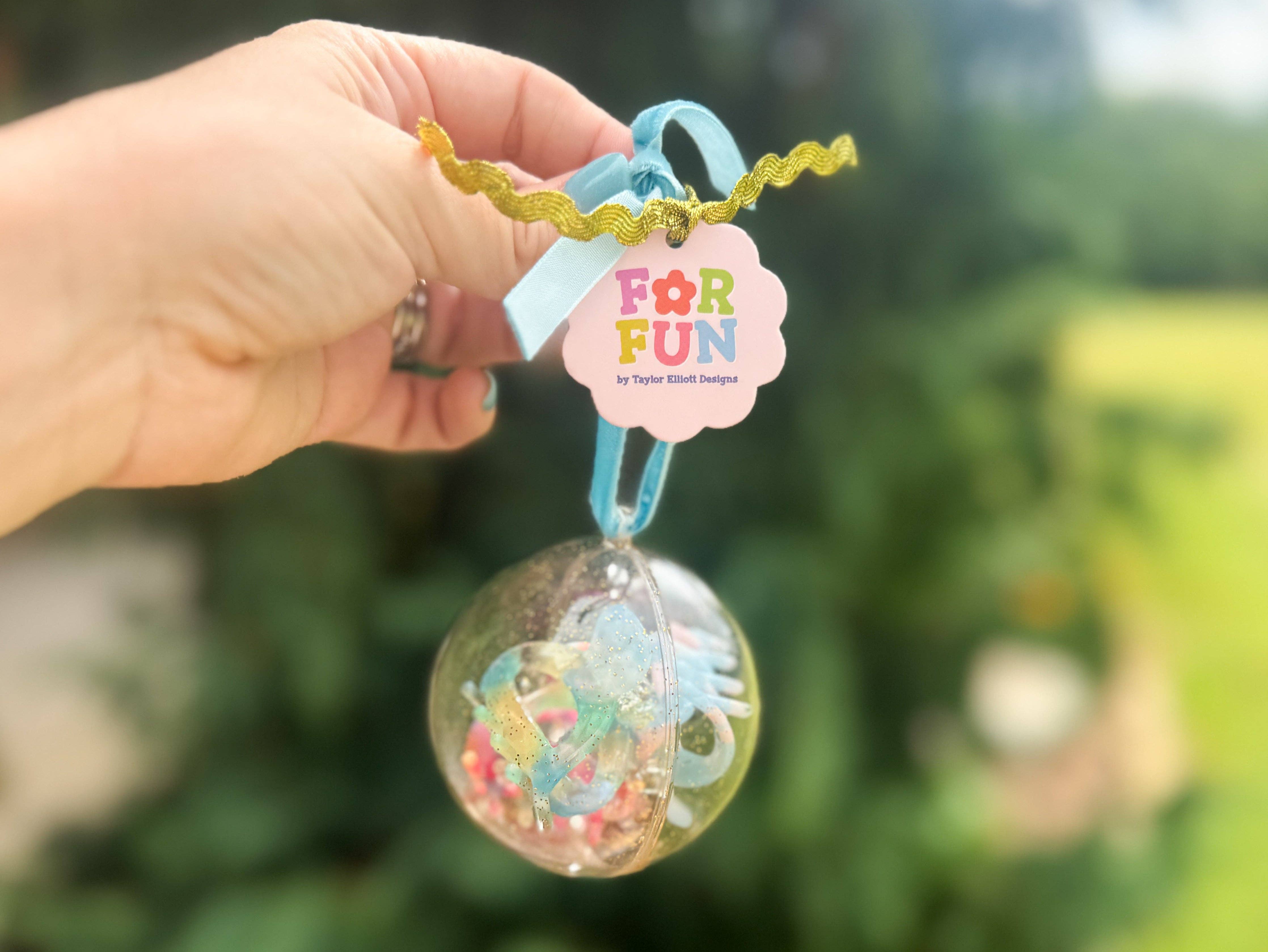 Details: * Includes 3 mini clips * 1 each of pink, blue and green acetate acid clips * Clip size: 1.02" x .94" * Clips are inside a clear, 3" x 3" ornament with gold glitter * Gold Ric Rac ribbon and pink velvet ribbon for hanger * For Fun is all about playful accessories made just for tween girls. Our collection of jewelry and accessories is youthful, on-trend, and designed to let your personality shine - because growing up doesn't mean outgrowing your sparkle. We are believers in happy colors, big dreams, and being unapologetically you.