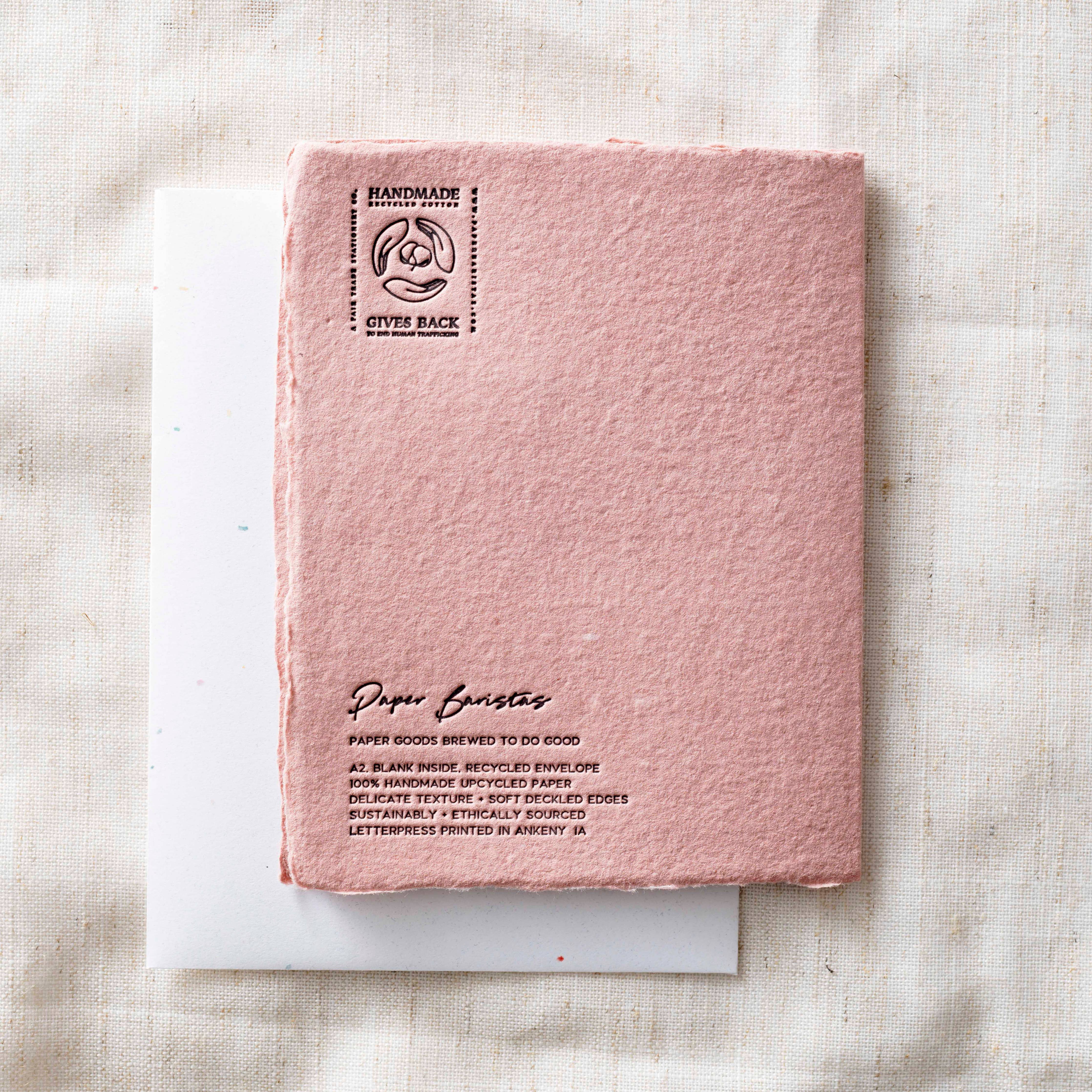 Beautiful paper. This card is meant to be treasured for years to come. Handmade paper beautiful enough to frame and helps us ensure there was no slave labor in our supply chain. Blank Back to write on.