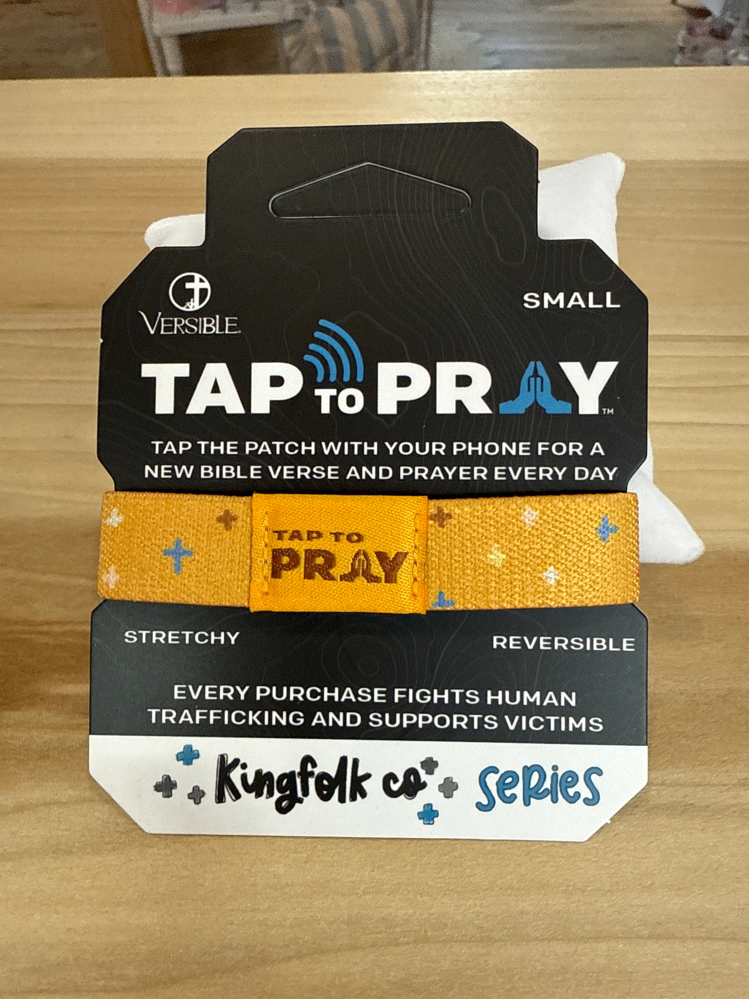 Introducing this new line of Tap To Pray™ wristbands. No app required, just tap the patch with your smartphone to receive a new bible verse and prayer every day. Plus, get a new verse and prayer anytime you want; just hit the "New Verse" link on the bottom of the page! Tap To Pray works with most smartphones. These new wristbands are soft, stretchy, reversible and waterproof! With two reversible patterns on each wristband and 5 sizes to choose from, it's easy to find a Tap To Pray wristband that's right for you!