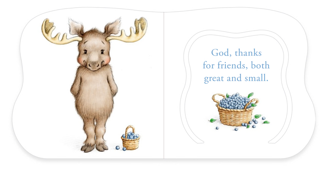 Join these adorable animal pairs in a board book that’s meant for little hands to hold and explore. Each spread features a large animal and his little friend, who is hiding under the flap. A short thank-You prayer on each spread models simple thankfulness, and the text includes animal sounds to make the reading even more fun.