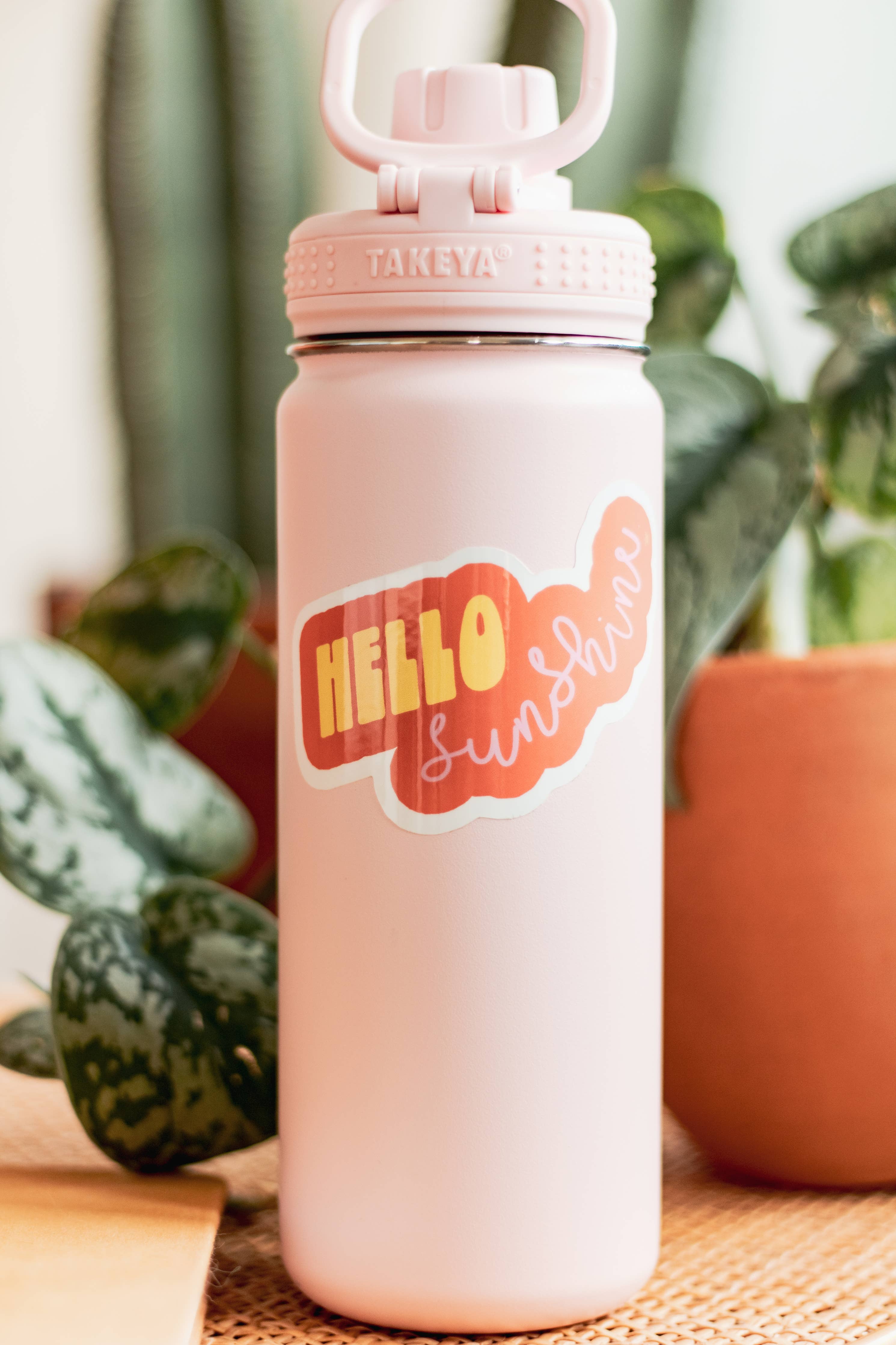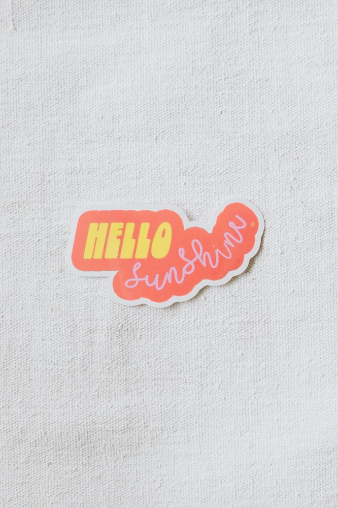 -Vinyl Decal, coral background with yellow Hello and lavender Sunshine