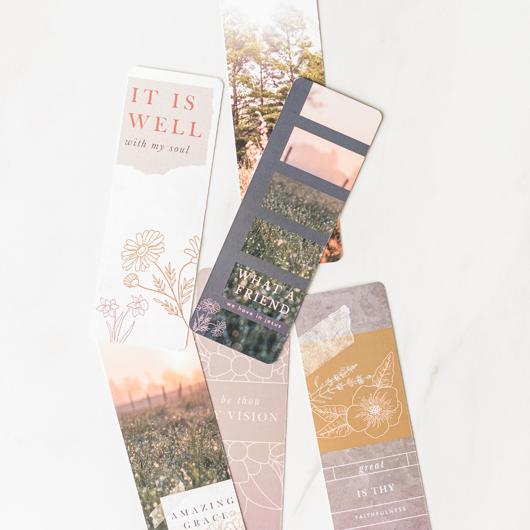 A beautiful bookmark for your Bible or journal, each with a beautiful image on one side and hymn lyrics on the other. May these cause you to pause and think on the truths found in the lyrics we know and love. Beautiful design on one side and lyrics on the other!