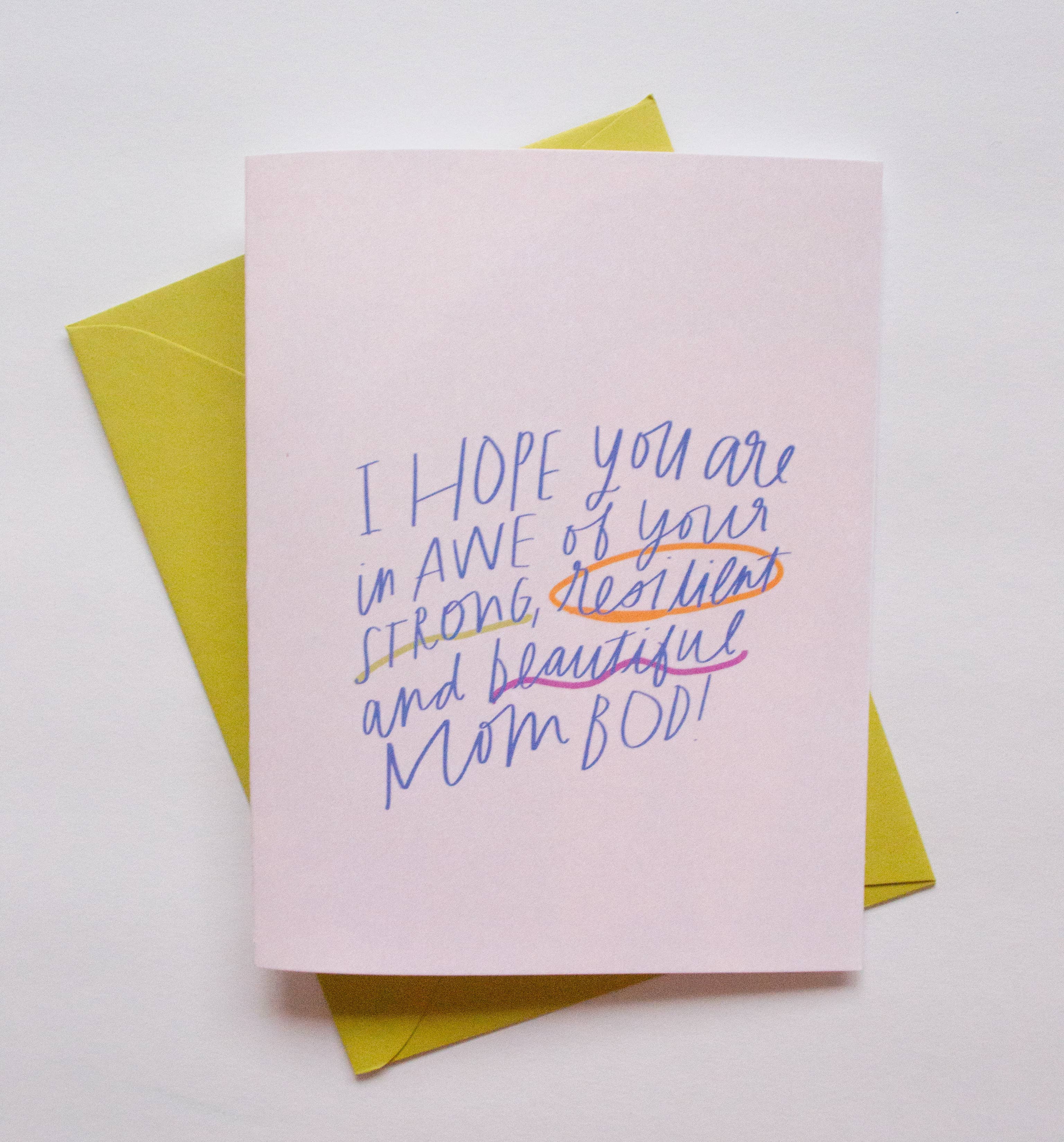 Everyone talks about the dad bod, so let’s celebrate and honor the strong, resilient and beautiful mom bod. Perfect card and sentiment for all your mom friends.