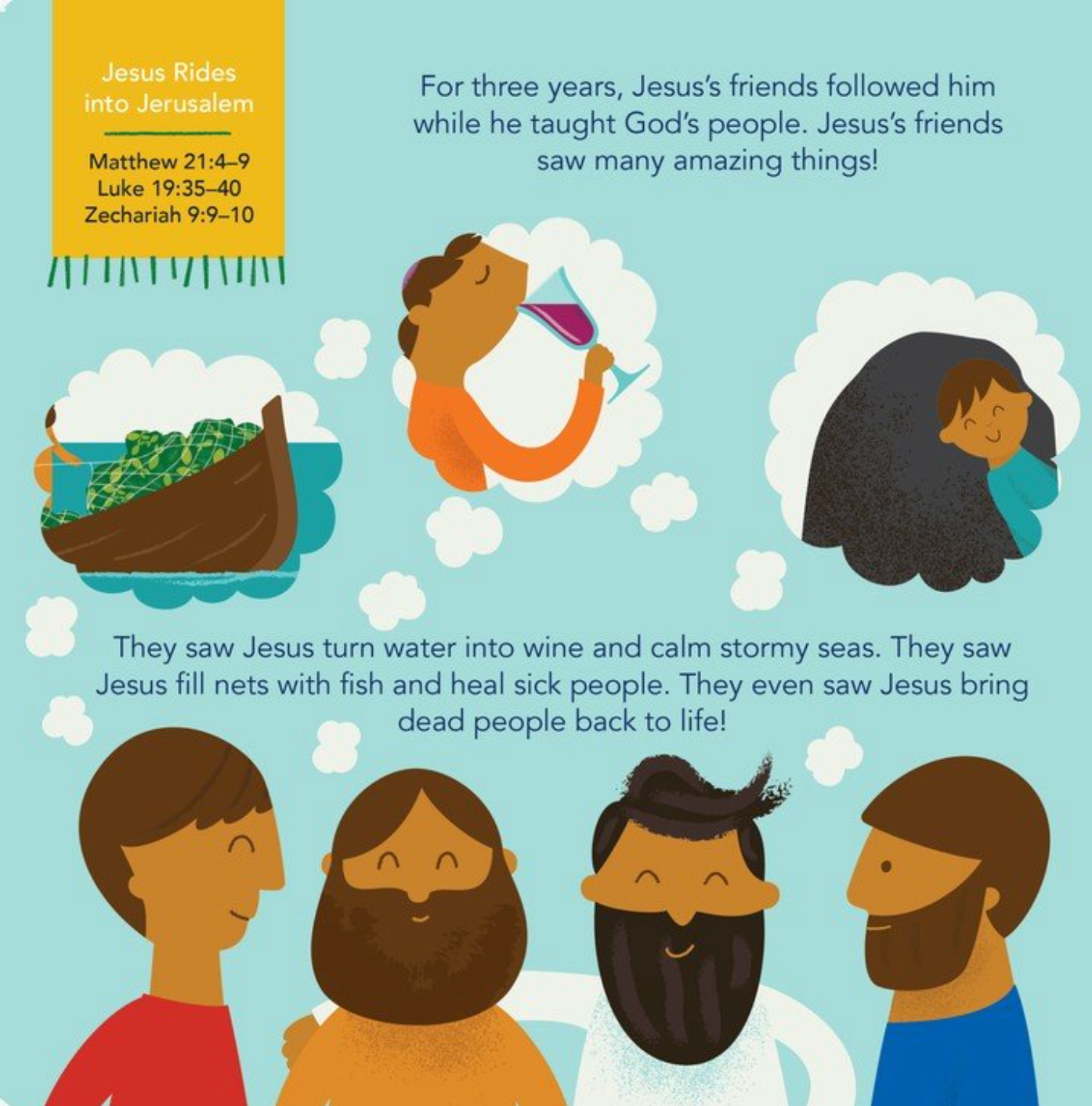 This board book is a part of The Beginner s Gospel Story Bible series. For children ages three to seven, this beautifully illustrated book begins with Palm Sunday and ends with Easter, when Jesus rose for us. Children will learn that Jesus Christ is our king, and that everyone who trusts in him is part of his forever family.