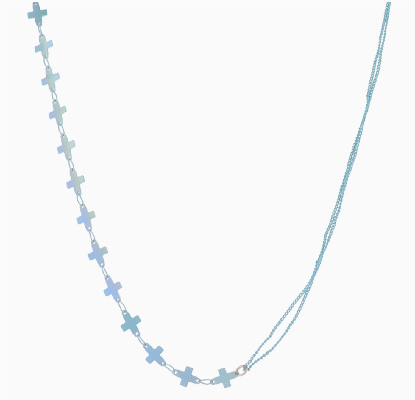 This Kids 14" Mint Cross Chain & Double Mint Curb Chain Necklace from Jane Marie is a delightful addition to any child's jewelry collection. With a .25" pendant, this necklace is beautifully designed to add a dash of charm to your little one's outfit. This product is categorized under kids' accessories and jewelry.