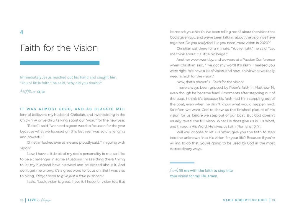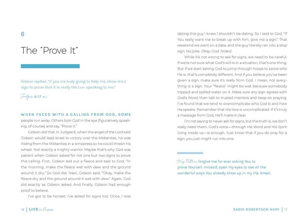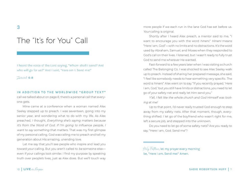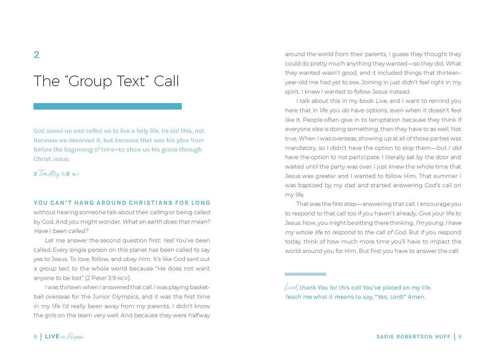 Celebrate every moment in life while living enthusiastically and following your God-given passions! New York Times bestselling author and podcaster Sadie Robertson Huff invites you to reach new depths of faith and new heights of life as you discover how to live life to the fullest. Now with a beautiful new cover and design, Live on Purpose, which topped several bestseller lists, is a go-to companion for spending intentional moments with God.