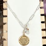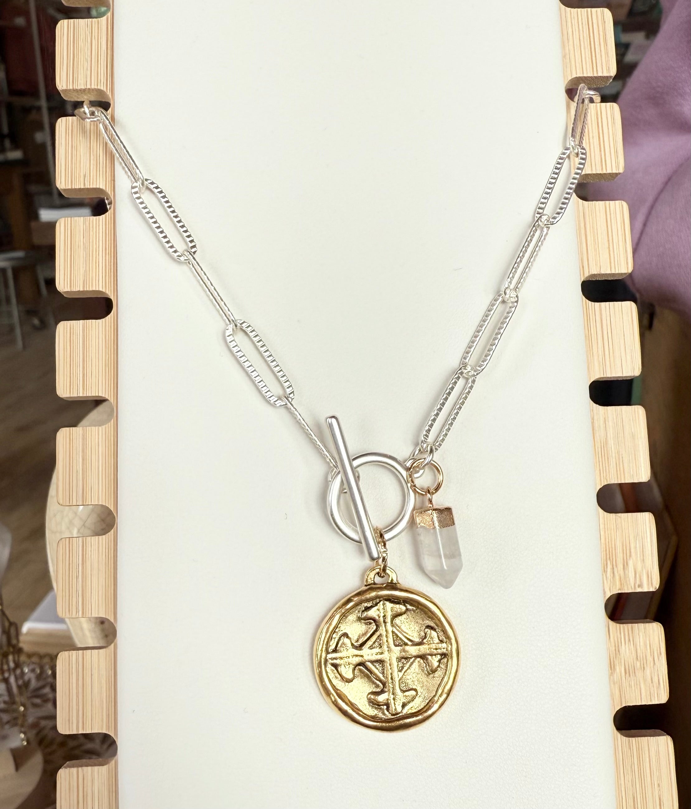 Silver necklace with gold pennant, handmade in Iowa. Added charm.