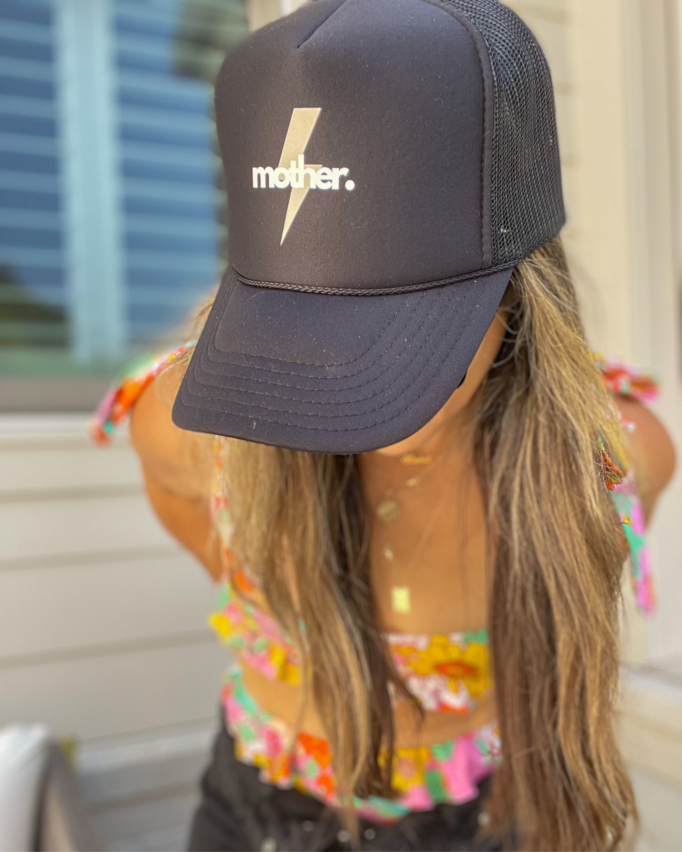 Rock cool vibes all day with our Black printed trucker hat. Our “mother strong” logo represents the strength, love, and resilience that mothers embody. Feel empowered and strong while wearing this hat.
