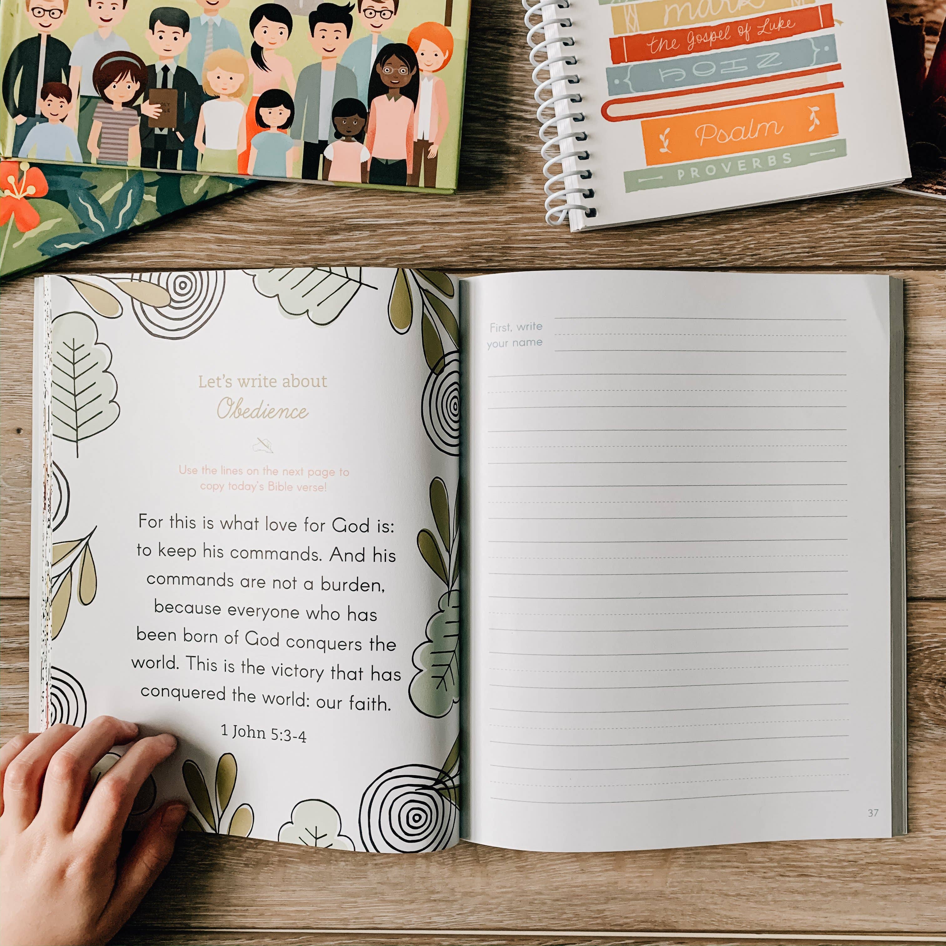 This writing workbook helps kids copy Scripture and have fun coloring in the pages as well. This volume focuses on character traits found in Scripture such as kindness, contentment, joyfulness, love, and wisdom. It also includes helpful tips for parents on how to use this resource!
