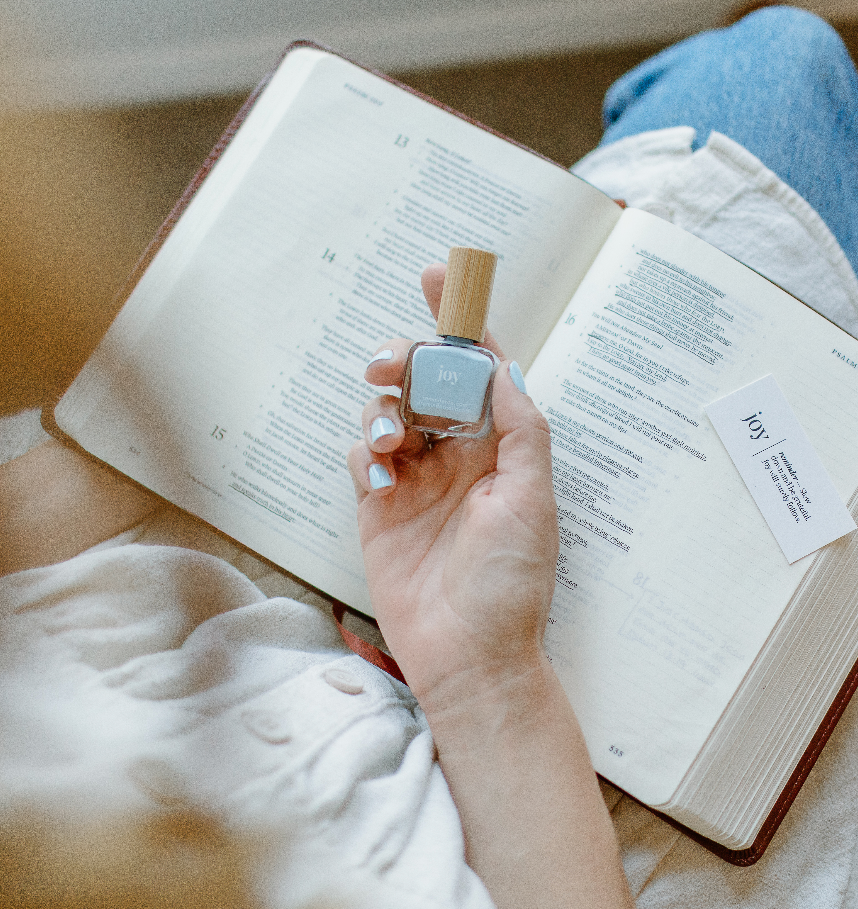 Every polish comes with an encouraging reminder, devotional and worship playlist.