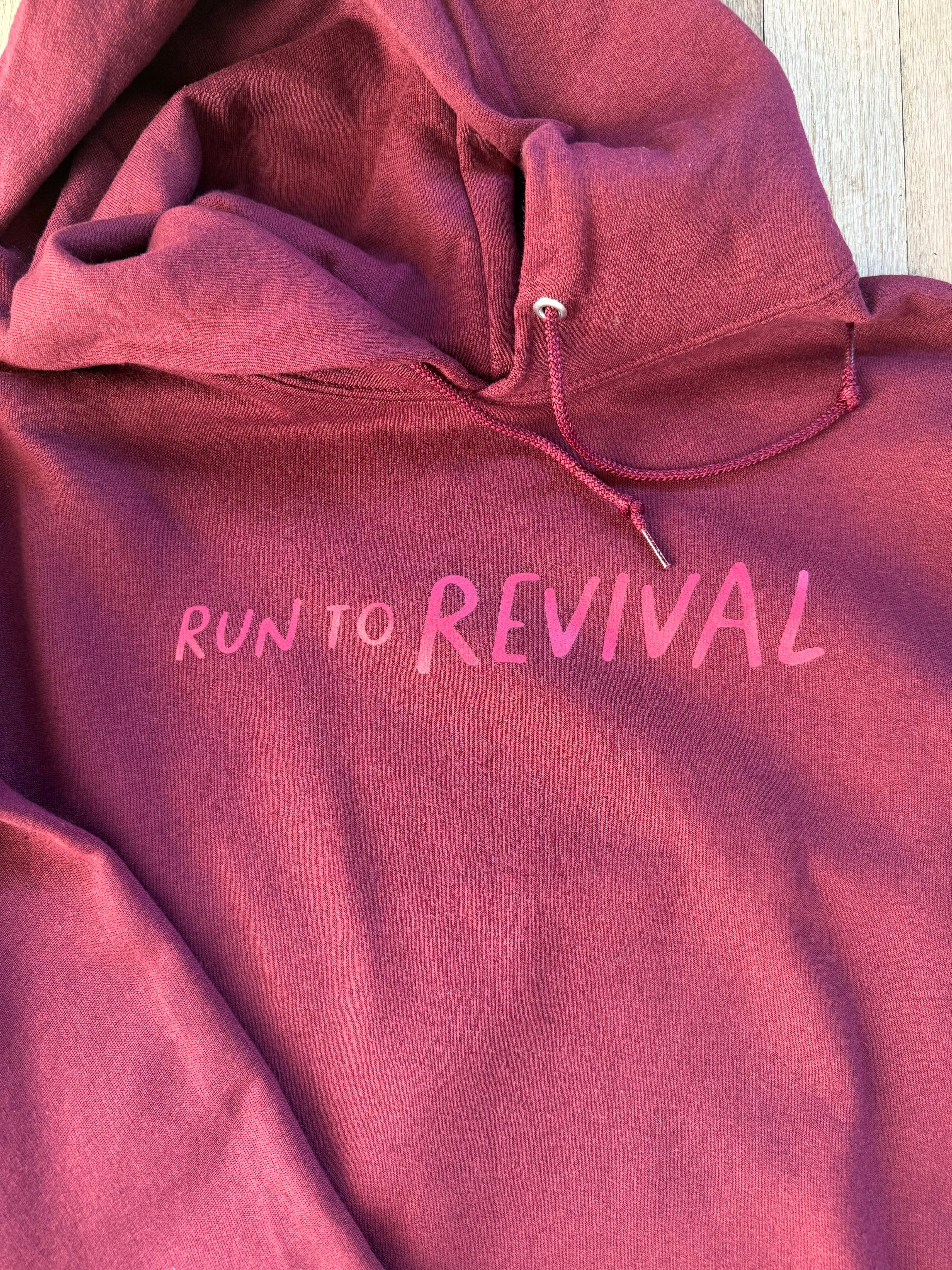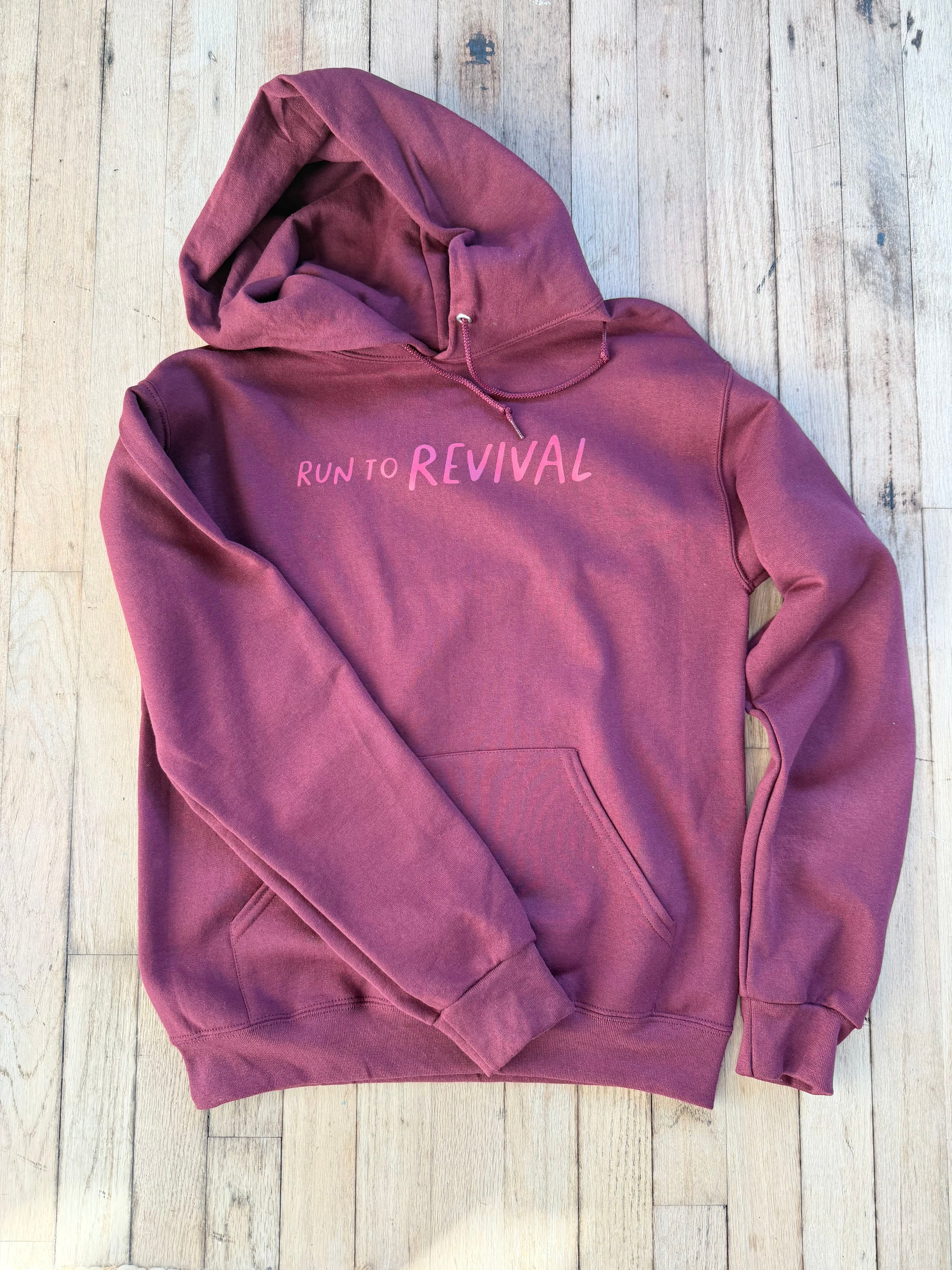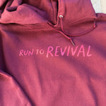 Revive your wardrobe with our Run to Revival oversized hoodie featuring our Run to Revival logo. Perfect for lovers of comfort and style. Get yours now! Color: Maroon