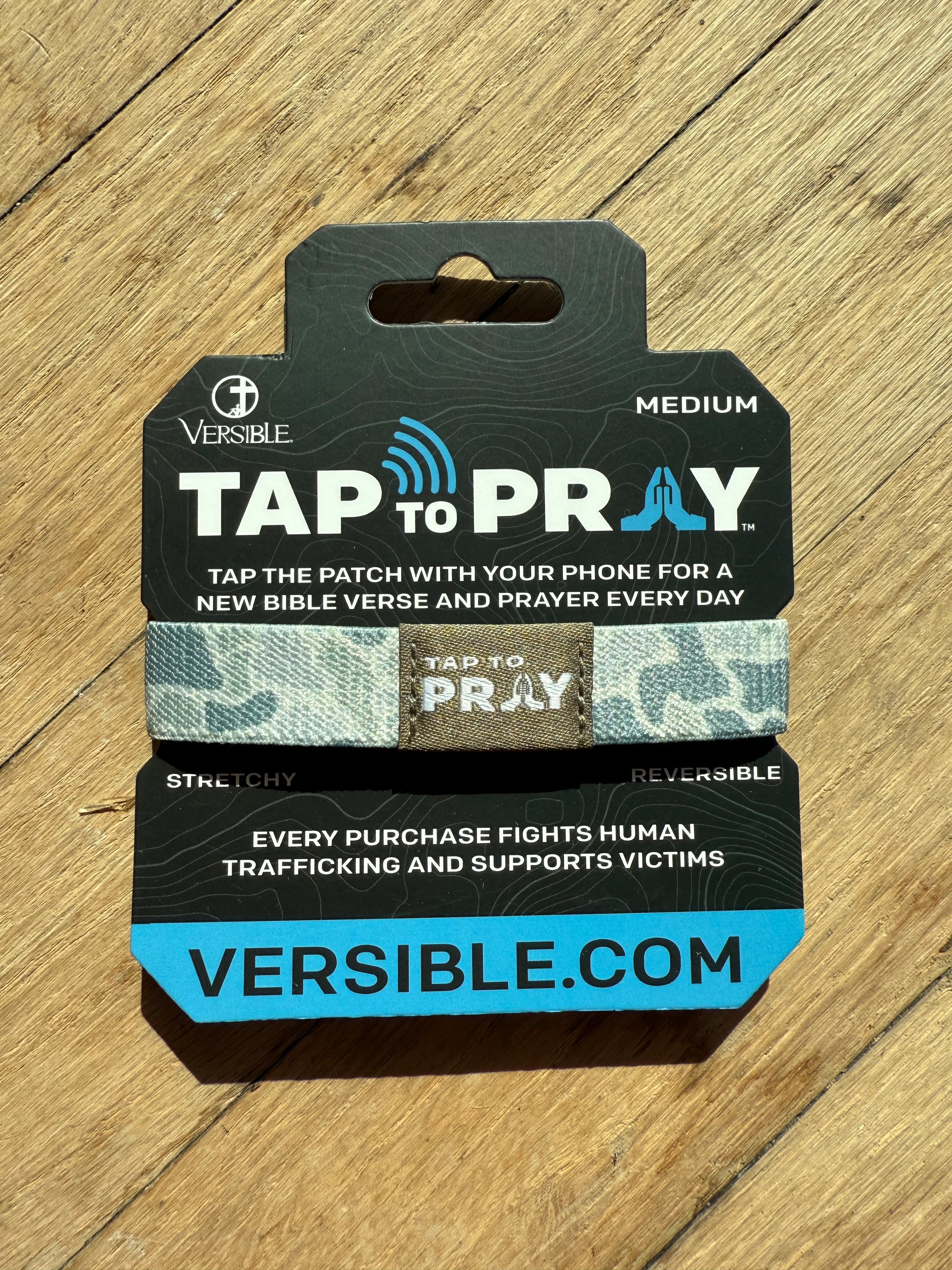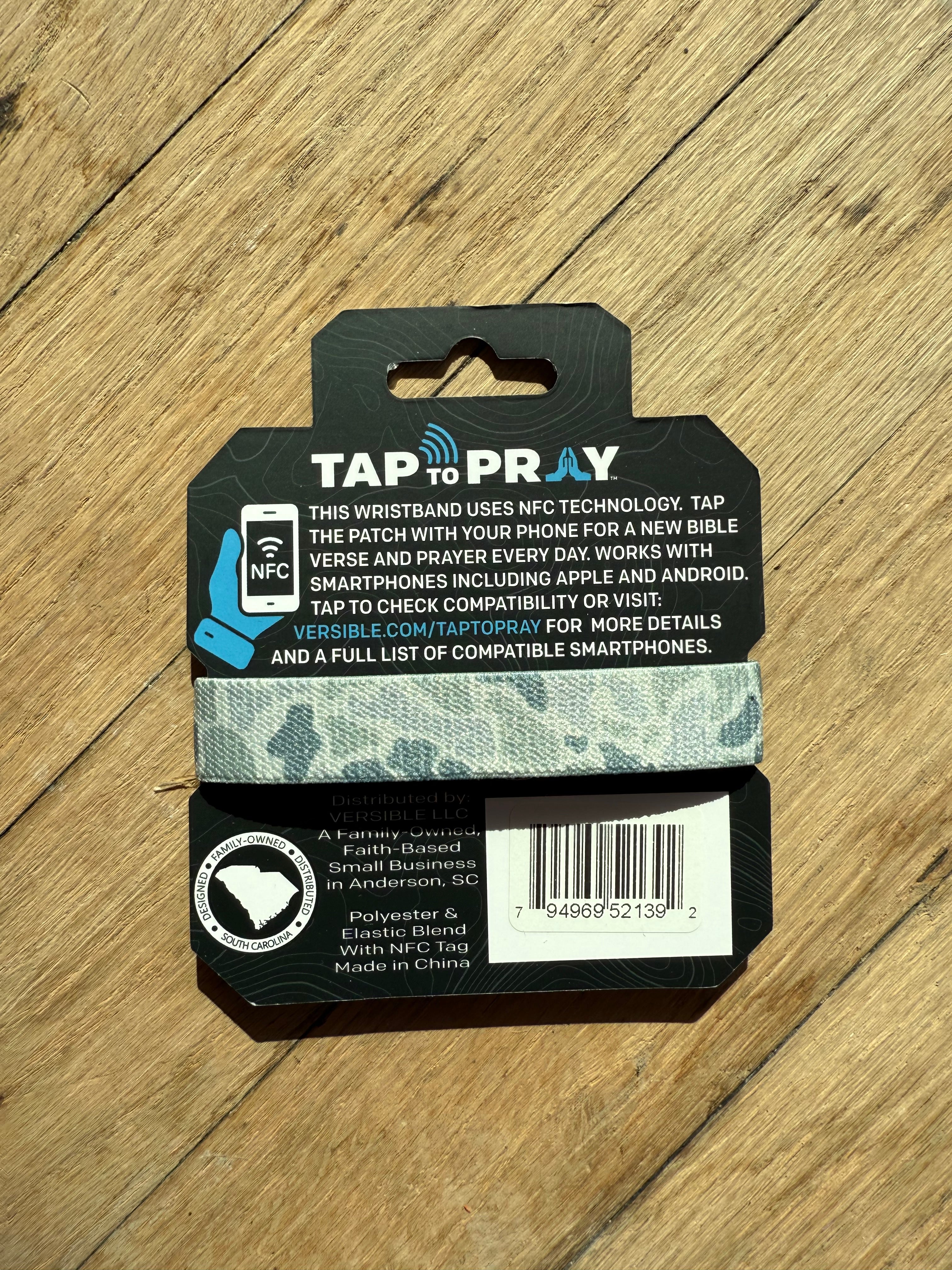 Introducing this new line of Tap To Pray™ wristbands. No app required, just tap the patch with your smartphone to receive a new bible verse and prayer every day. Plus, get a new verse and prayer anytime you want; just hit the "New Verse" link on the bottom of the page! Tap To Pray works with most smartphones. These new wristbands are soft, stretchy, reversible and waterproof! With two reversible patterns on each wristband, it's easy to find a Tap To Pray wristband that's right for you!