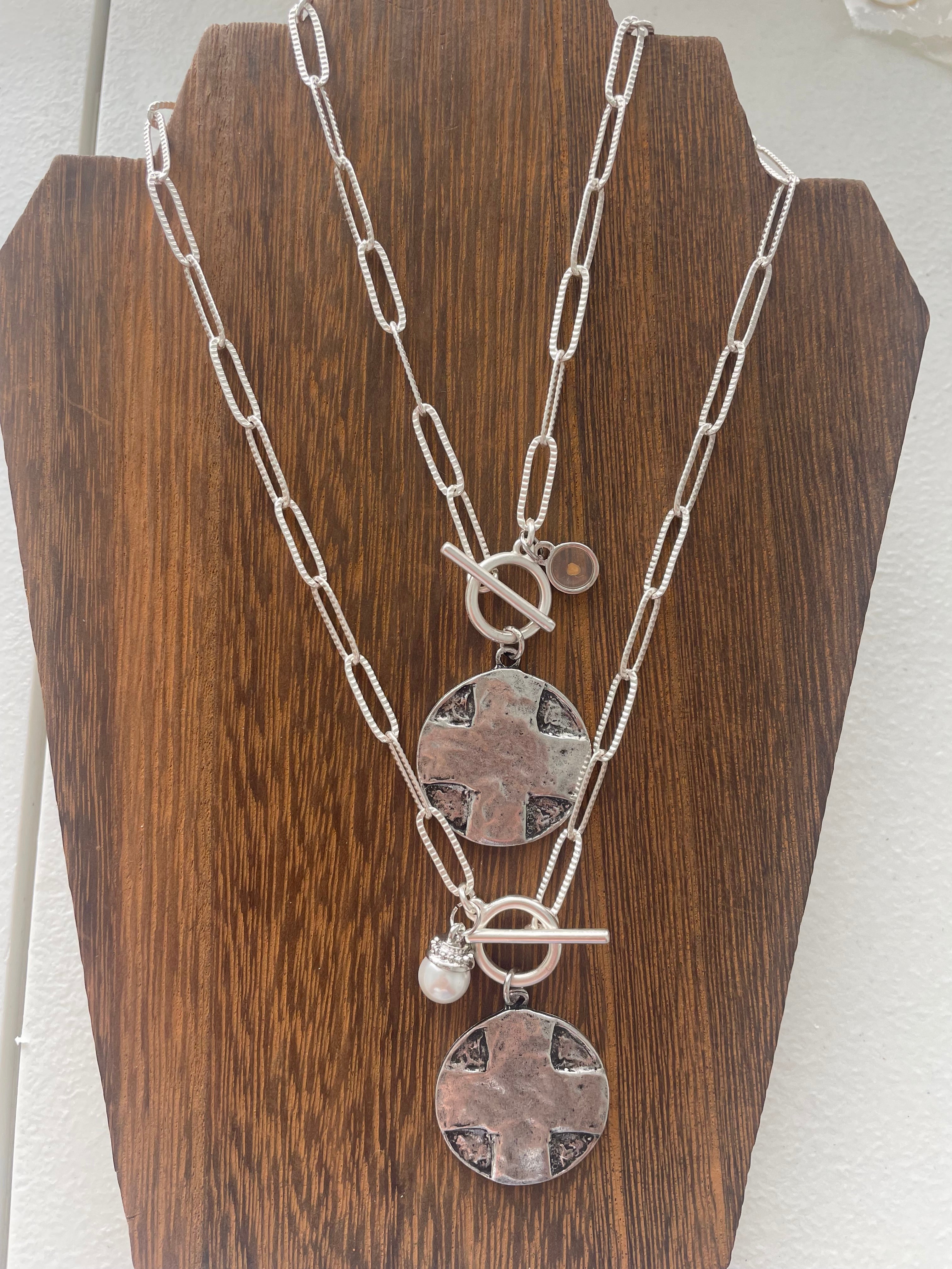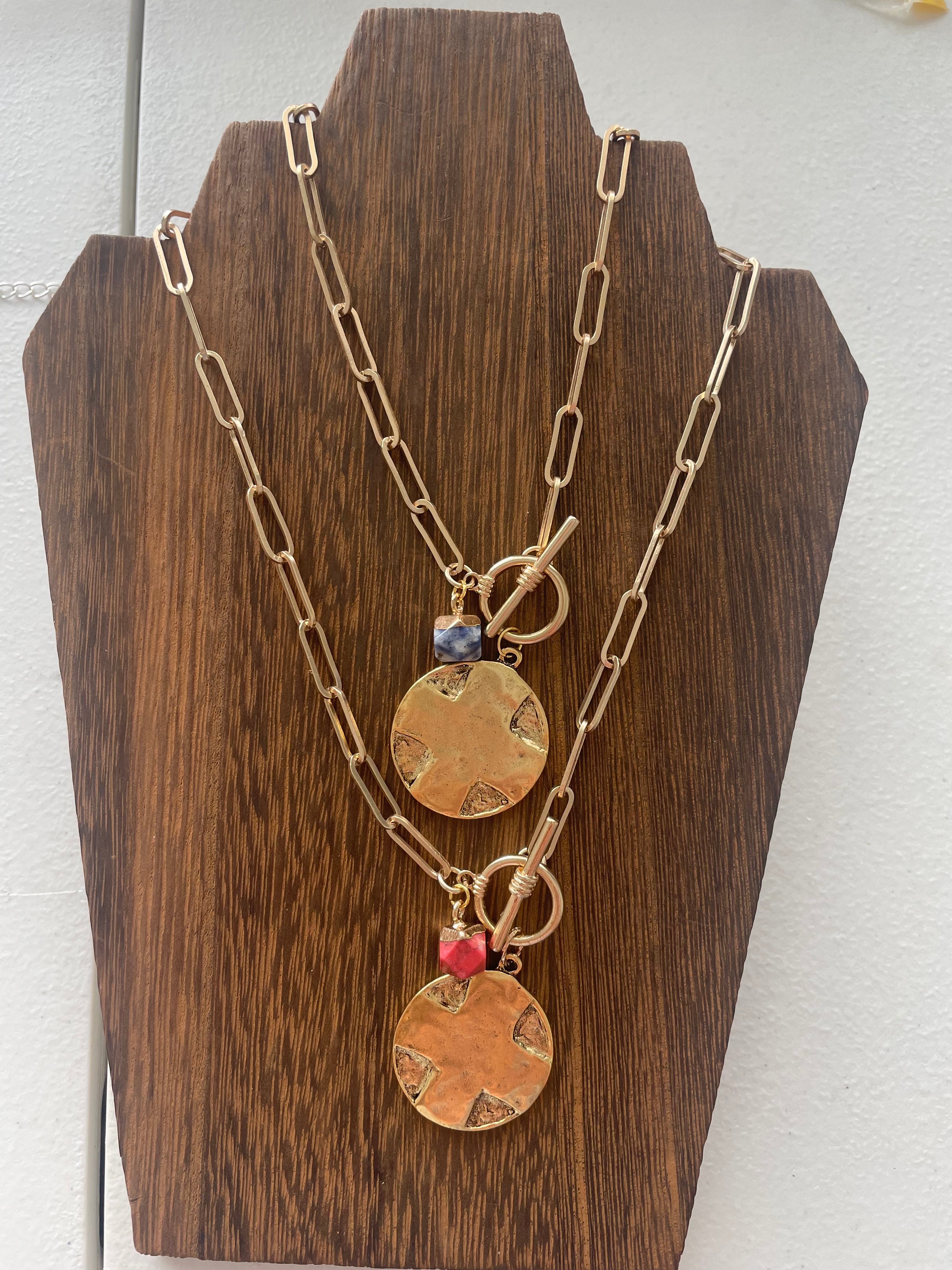 These chunky necklaces are handmade by an Iowa local jewelry designer. You will receive a special charm on each necklace, including the Lords Prayer pendant.