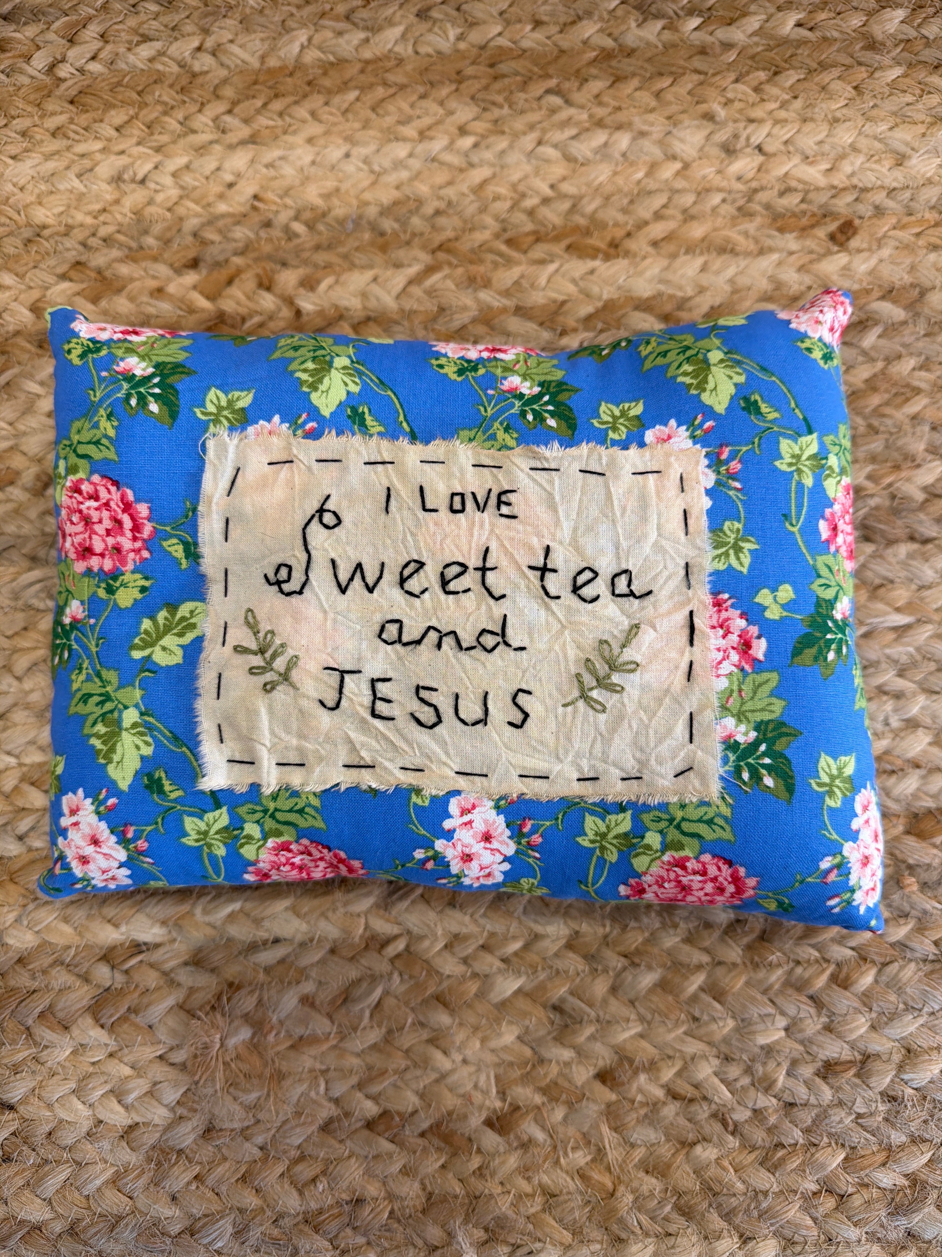 Hand-stitched Pillow - Sweet Tea and Jesus