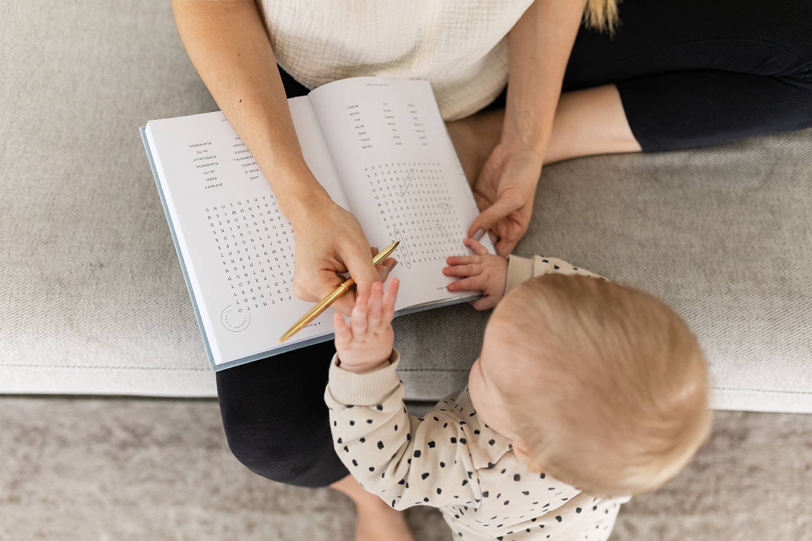 These 72 wordsearches are filled with quotes and Scriptures on being present in our days and seeking the presence of God. They’re beautifully bound in a soft blue linen with gold foil and a bookmark ribbon.