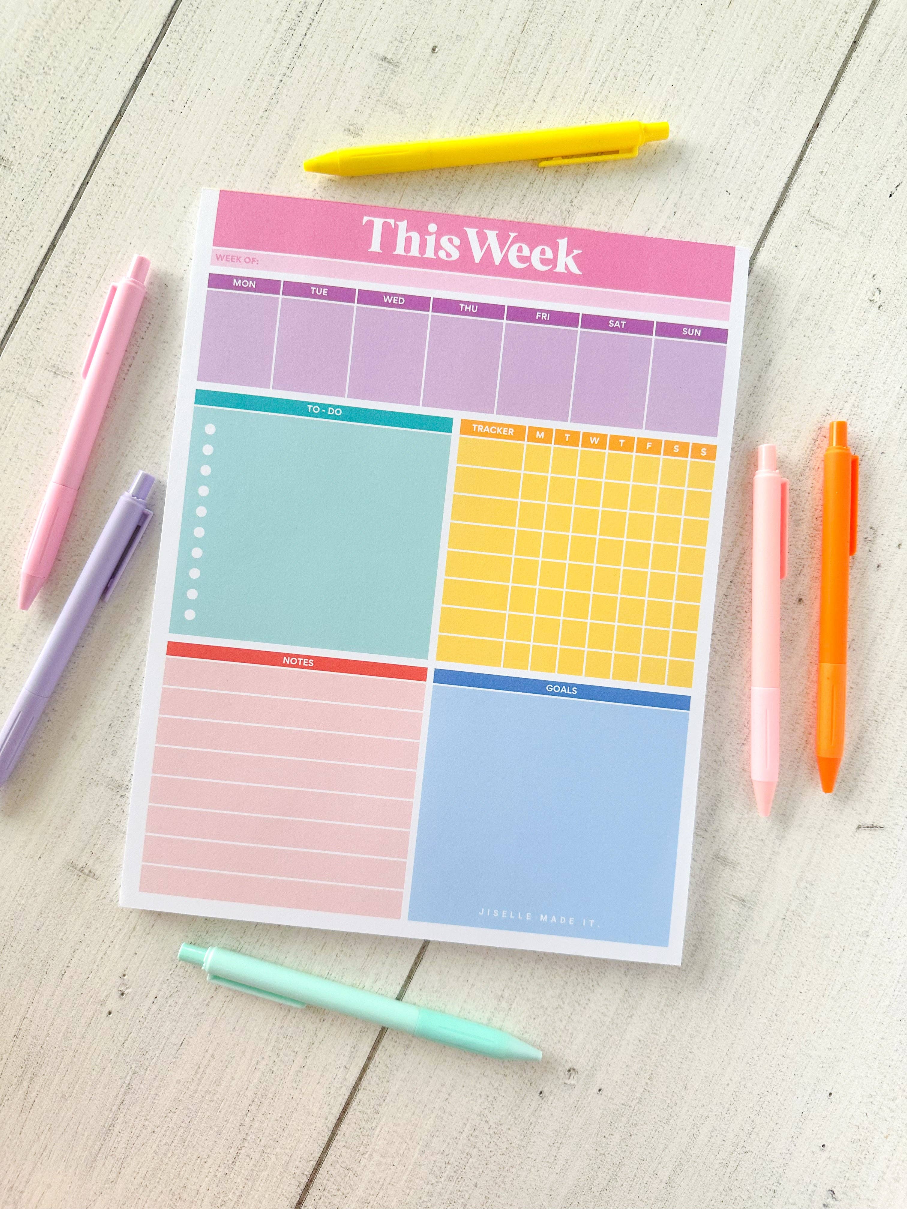 Weekly Notepad Plan your week with ease and clarity using this practical weekly notepad. Designed to help you organize your tasks, appointments, and goals for the entire week, it’s the perfect tool for staying ahead of deadlines and making the most of your time. With space to track priorities, events, and to-dos, you’ll feel more focused and productive as you manage your week.