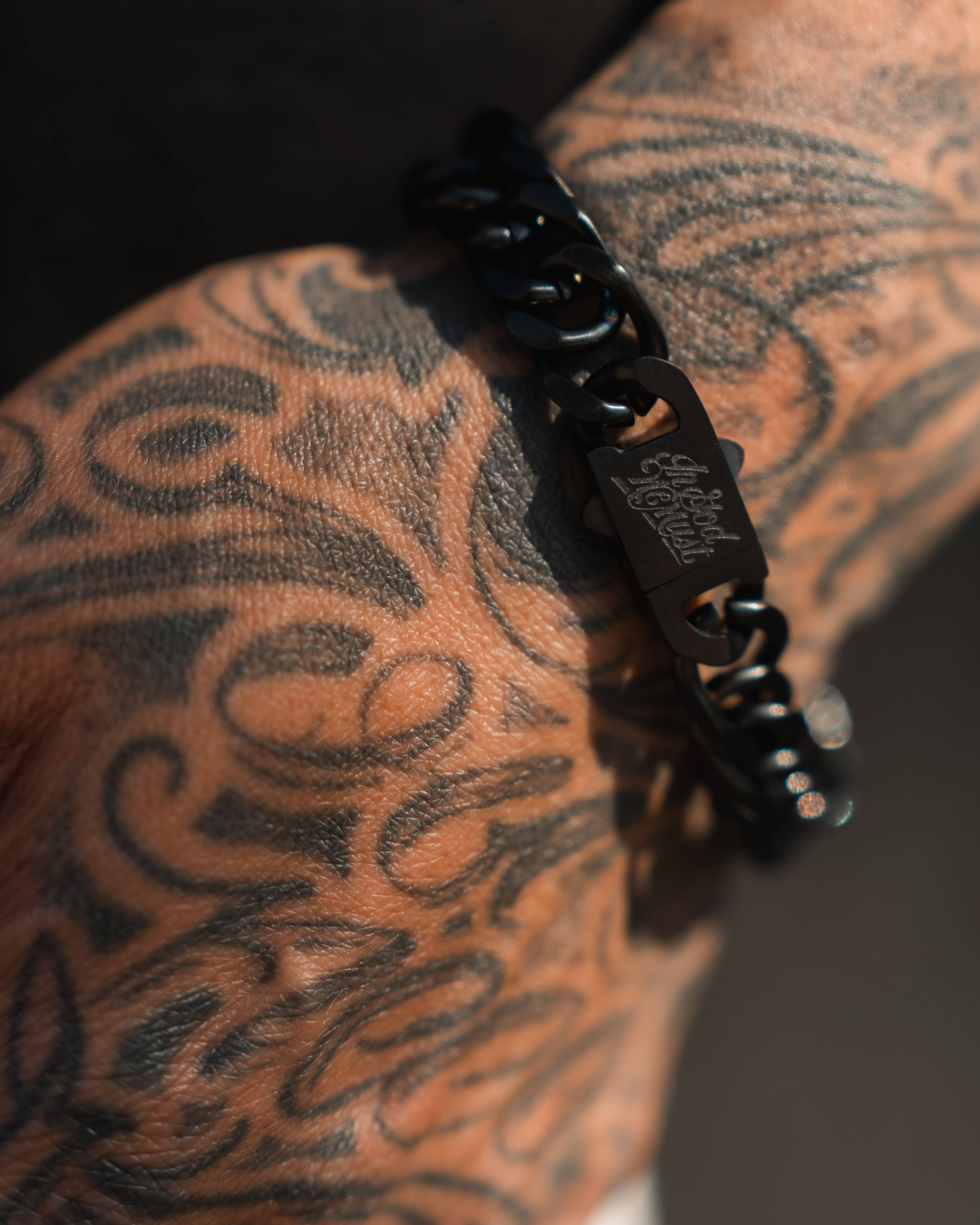 A minimal black chain link bracelet built to remind you where your strength comes from. Clean, durable, and made to move with you — a subtle statement of unshakable faith. * 100% Stainless Steel