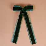 Elevate your everyday with the Velvet Luxe Layered Hair Bow—a modern take on timeless elegance. Designed with rich velvet ribbon and a delicate sheer underlay, this layered bow brings a polished finish to any hairstyle. Its sleek silhouette and luxe textures make it perfect for special occasions or everyday glam, while the gold barrette clip ensures a secure, comfortable hold. Stylish and versatile for any occasion Soft, high-quality fabric with a chic, polished look Secure, comfortable all-day hold Gold barrette clip closure