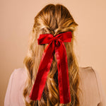Elevate your everyday with the Velvet Luxe Layered Hair Bow—a modern take on timeless elegance. Designed with rich velvet ribbon and a delicate sheer underlay, this layered bow brings a polished finish to any hairstyle. Its sleek silhouette and luxe textures make it perfect for special occasions or everyday glam, while the gold barrette clip ensures a secure, comfortable hold. Stylish and versatile for any occasion Soft, high-quality fabric with a chic, polished look Secure, comfortable all-day hold Gold barrette clip closure