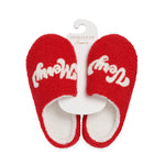 Made from polyester and TPR, Get into the holiday spirit from head to toe with our “Very Merry” Slippers! These cheerful red slippers feature plush sherpa fabric and festive white lettering that adds instant joy to your loungewear lineup. With a cozy faux fur lining and cushioned sole, they’re the perfect treat for your feet after a long day of decking the halls. Whether you're sipping cocoa or wrapping gifts, these slippers keep things merry and bright.
