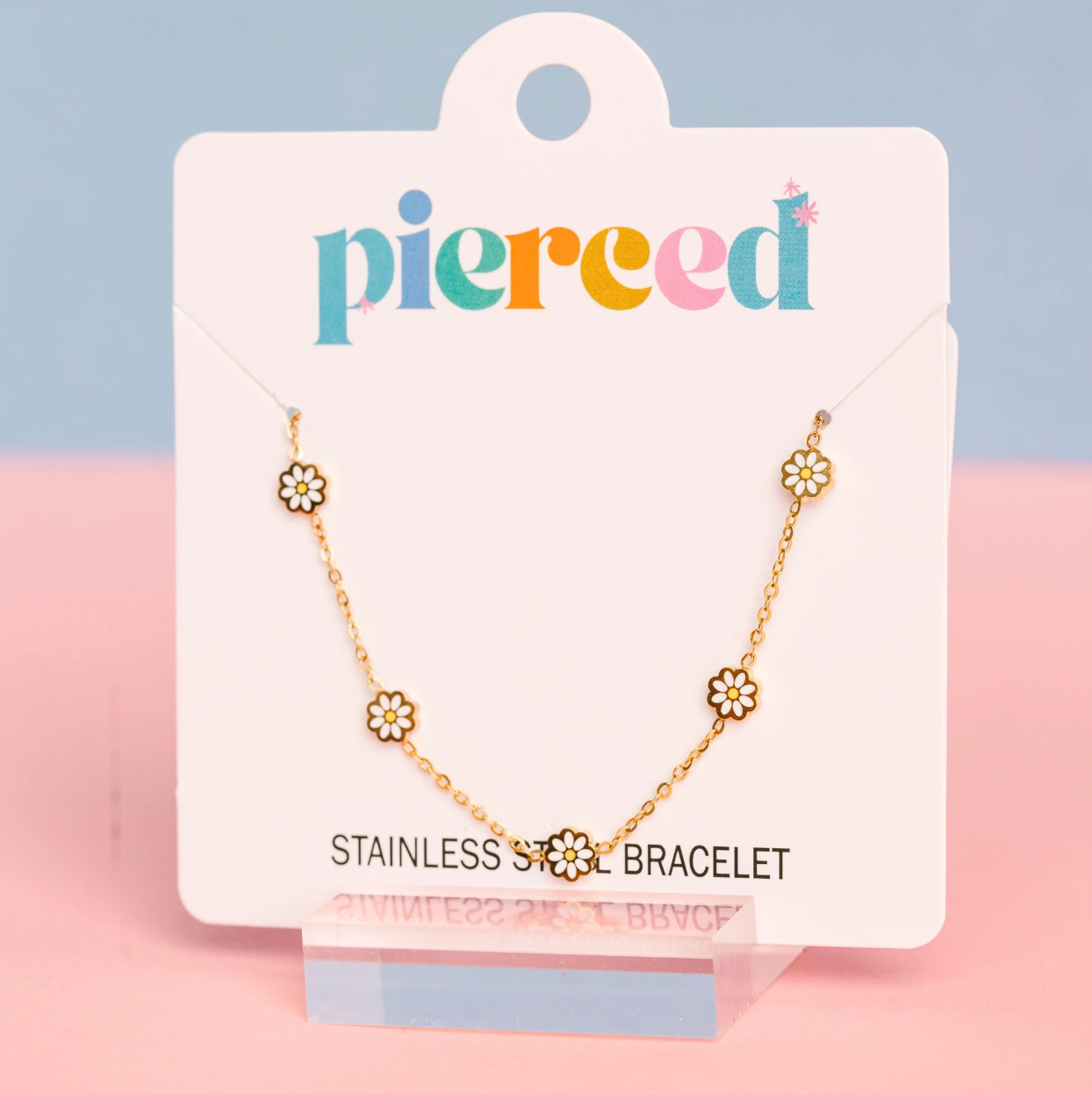 The cutest dainty bracelet made for wearing alone or stacking. We added the enamel/design on both sides so you don’t have to worry about it flipping to the backside (yes, it bugs us too). Sized perfectly for kids and adults to wear.