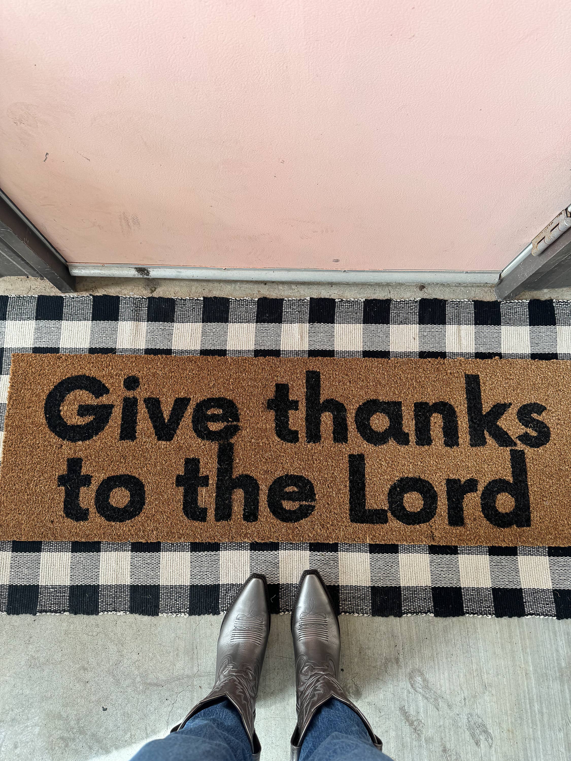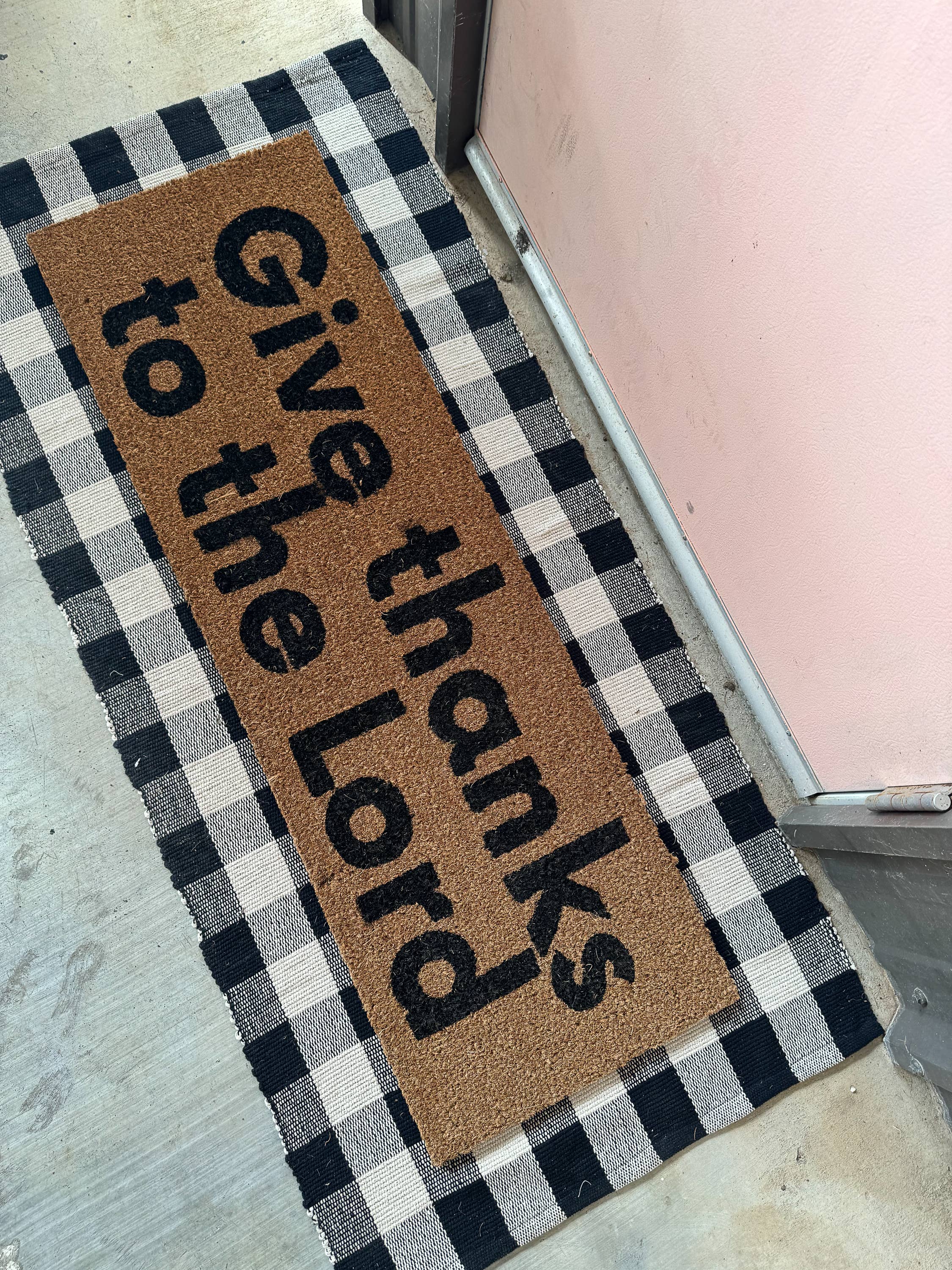 This doormat serves as a constant reminder to express gratitude with the phrase "Give thanks to the Lord." My hope for this doormat is that all who see it will give thanks to God for his never-ending love and reflect on the incredible ways God has influenced their lives. There is so much to be thankful for, and God is so good! Let's proclaim His faithfulness in our lives today and forever, friends!